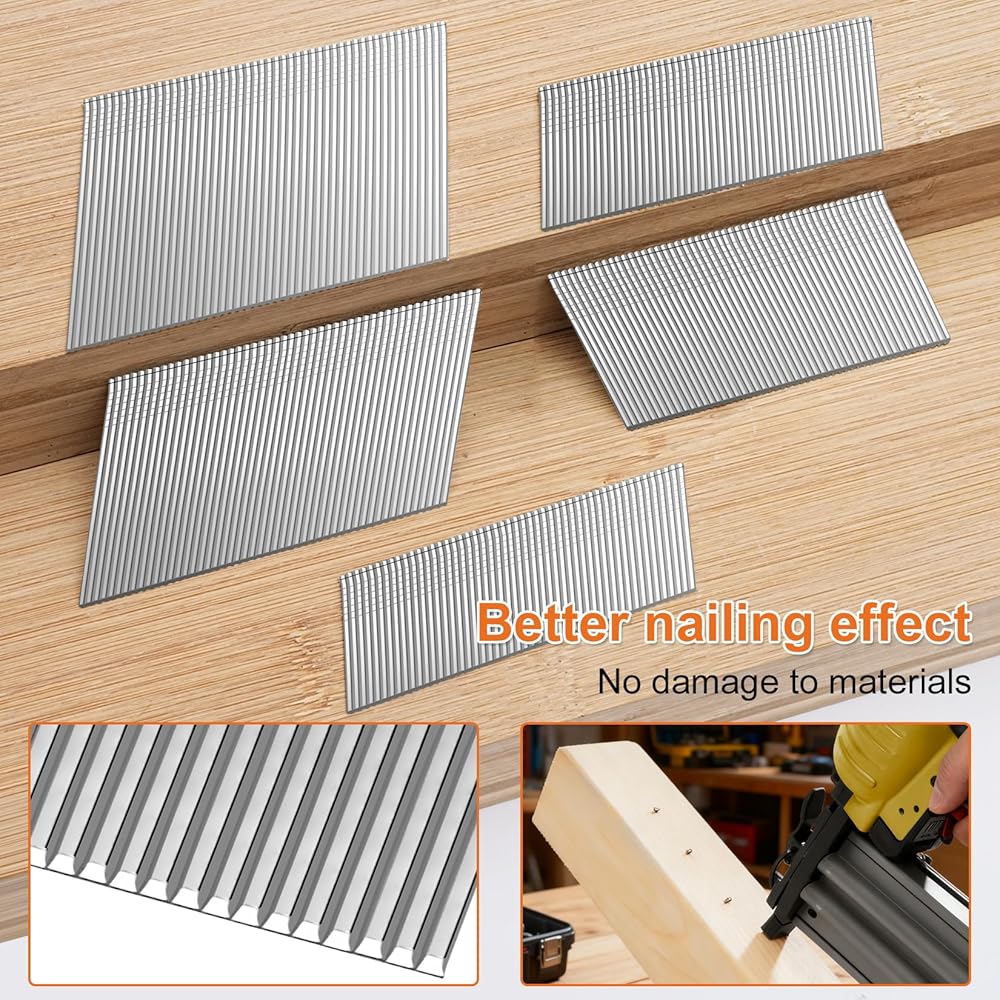 【تصميم بمقاس عالمي】تتوافق مسامير مسدس الأظافر هذه ذات قياس 16 مع معظم مسدسات الأظافر الكهربائية / اللاسلكية / التي تعمل بالطاقة / الهوائية ذات 20 درجة. مثالية للمقاولين أو مستخدمي DIY. مثالية للشرائط الزخرفية الصغيرة، وألواح القاعدة، والعزل المنزلي، ولباد الأسقف، وأسلاك السياج، وشرائط الغلق، ودعم السجاد، والتزيين الداخلي والمشروعات اليدوية، إلخ.