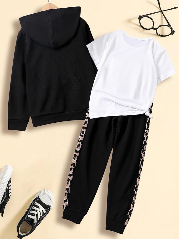 • Package: Joggers sweatpants set includes 1x long sleeve zip-up hoodie + 1x Graphic tee, and 1x jogger pants