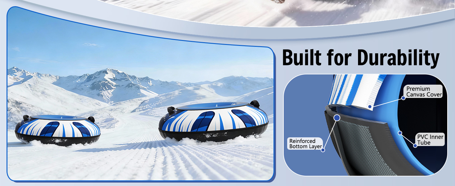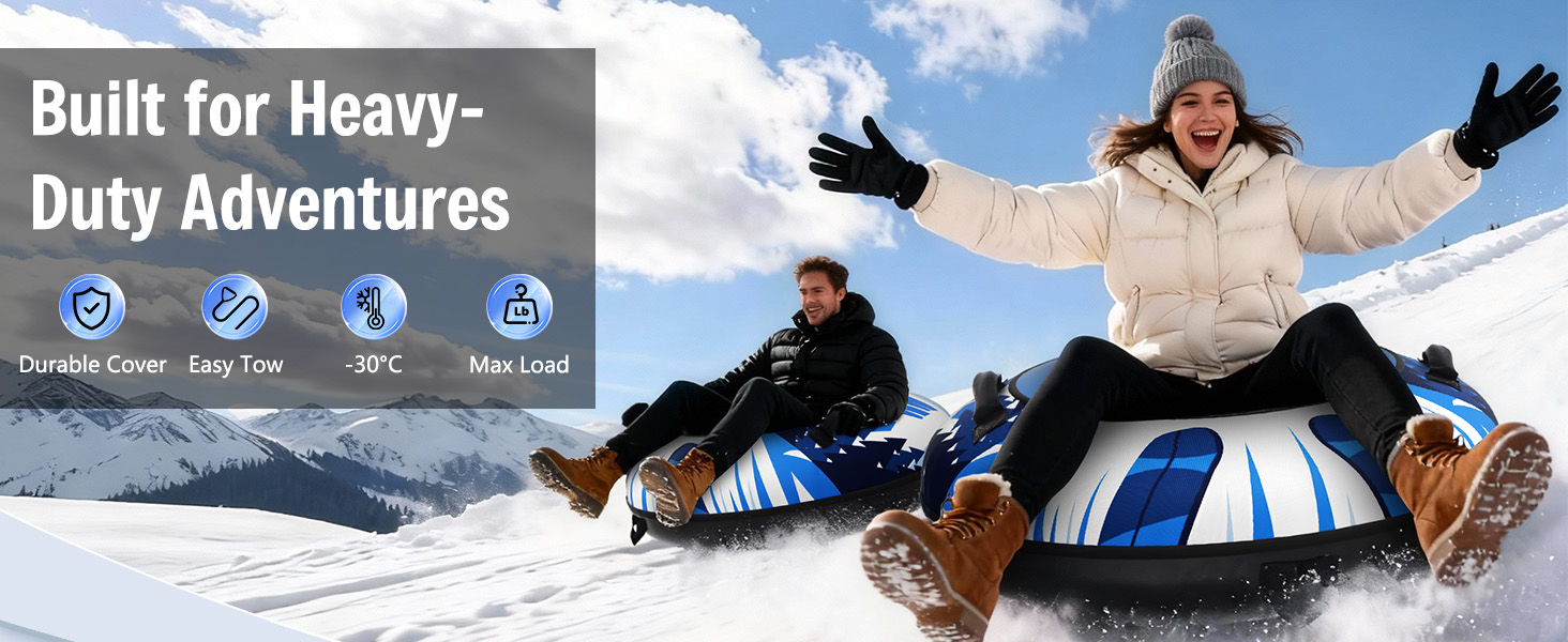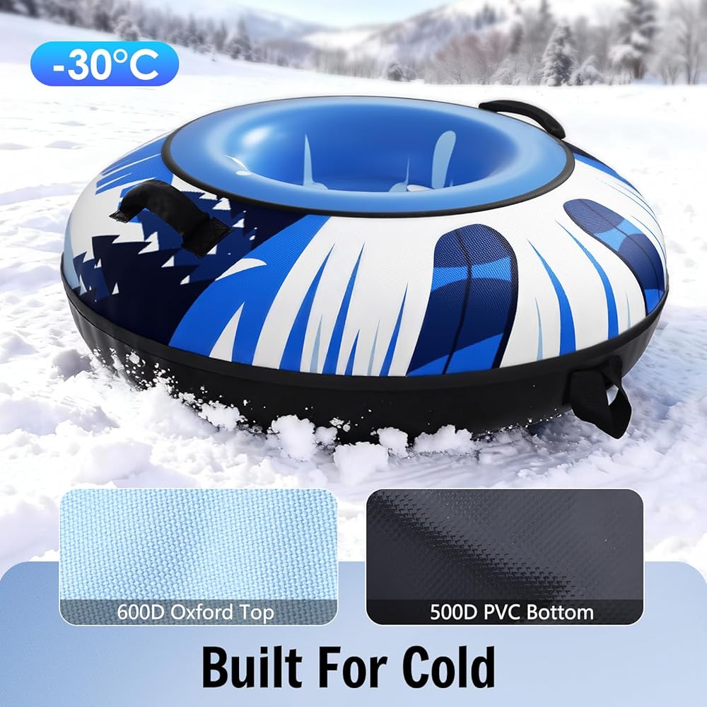 تذكير بالسلامة: يدعم أنبوب الثلج هذا ما يصل إلى 500 رطل ويظل آمنًا في الطقس البارد حتى -30 درجة مئوية. أمسك دائمًا المقابض القوية بقوة وابق جالسًا أثناء التزلج، خاصة للأطفال. لا تستخدم الأنبوب أبدًا بالقرب من الطرق أو الأشجار أو العوائق، وقم دائمًا بإشراف الأطفال.