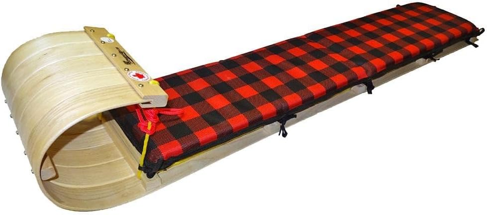 The Grizzly 5 ft. Toboggan with Plaid Pad by Streamridge is the ideal toboggan for youth. Handcrafted from Ontario ash hardwood, this beautiful heirloom is designed and built to be passed on through generations. Assembled with durable screws (not staples) to last a lifetime. Quality and traditional style are achieved with a steam-bent manufacturing technique. Hand-sewn, plaid pad adds a rustic color and provides a smooth, comfortable ride down hill. Made from tough, 600 denier polyester. Attaches easily with strong, double-stitched tie straps. A premium, braided pull rope is easy on your hands. The Grizzly 5 ft. Toboggan with Plaid Pad by Streamridge brings instant smiles to youth and adults alike. Enjoy the great outdoors tobogganing with your friends for many winter seasons.