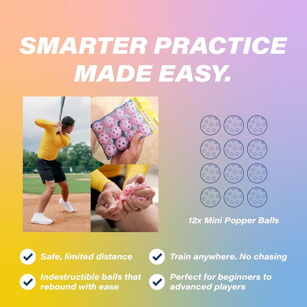 رائعة لجميع مستويات المهارة: يمكن استخدام كرات Popper لأي مستوى مهارة جنبًا إلى جنب مع تي شيرت Mini Tee Popper. قم بتحسين لعبتك وضربك باستخدام مجموعتنا المكونة من 12 كرة من كرات تدريب البيسبول!