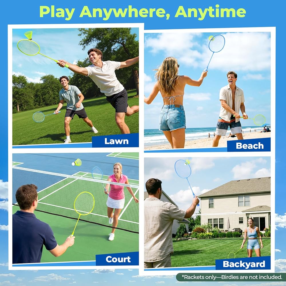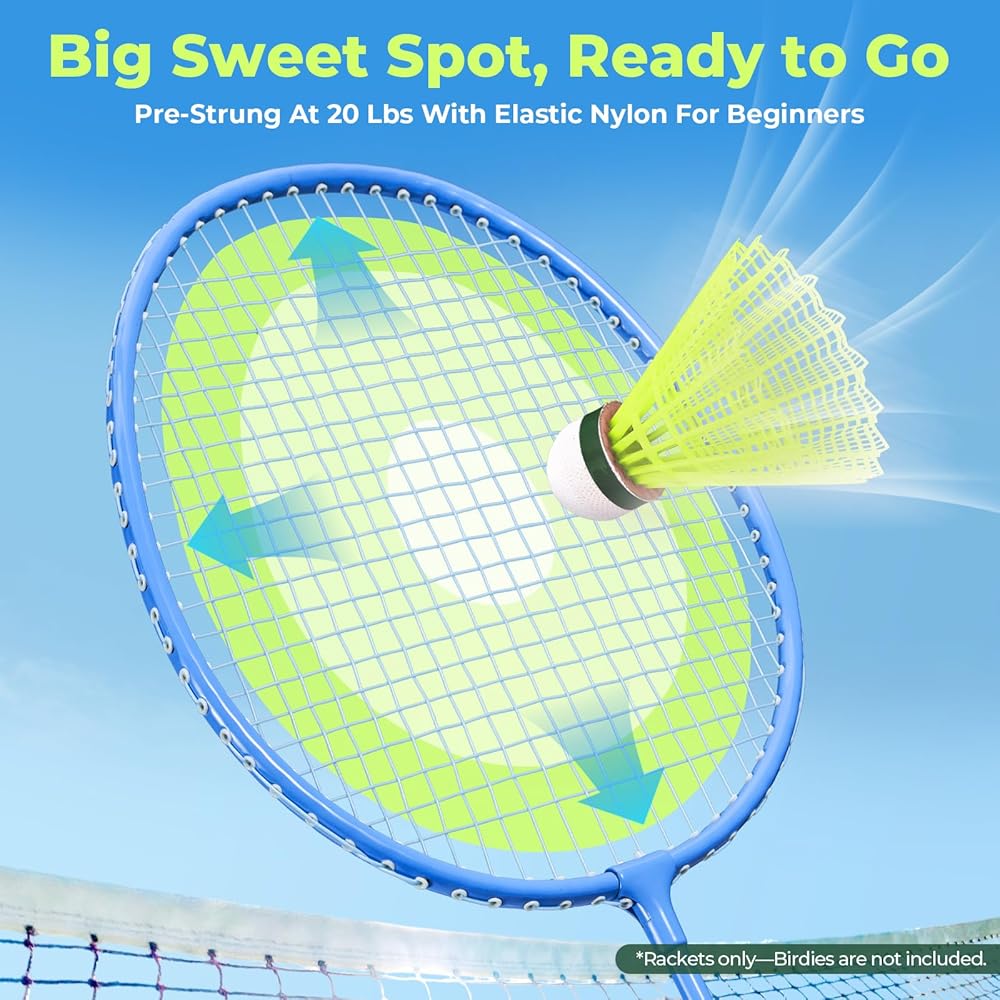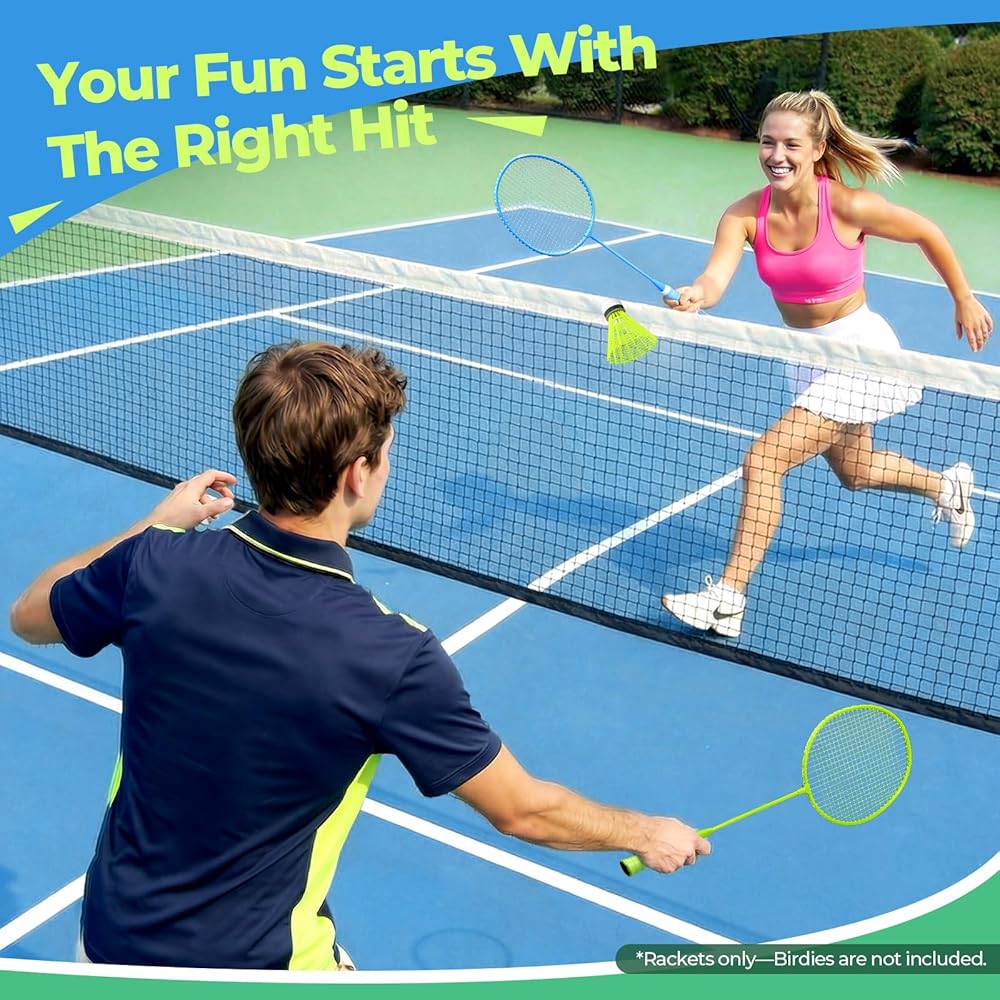 مصممة لمتعة الفناء الخلفي: تحتوي هذه العبوة على مضارب كرة الريشة ذات الألوان الزاهية والمرئية للغاية (الأزرق والأصفر النيون). يرجى ملاحظة: لا يتم تضمين الريشات، مما يسمح لك بحرية اختيار الطيور الدقيقة التي تناسب أسلوب لعبك. نقدم أيضًا خيارات حزمة مناسبة على هذه الصفحة للإعداد الكامل. مثالية لحفلات العشب ورحلات الشاطئ والتخييم وألعاب الفناء الخلفي العائلية غير الرسمية.