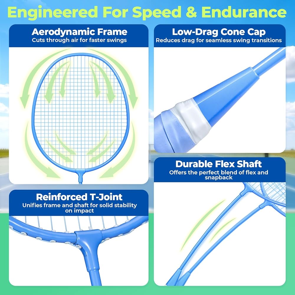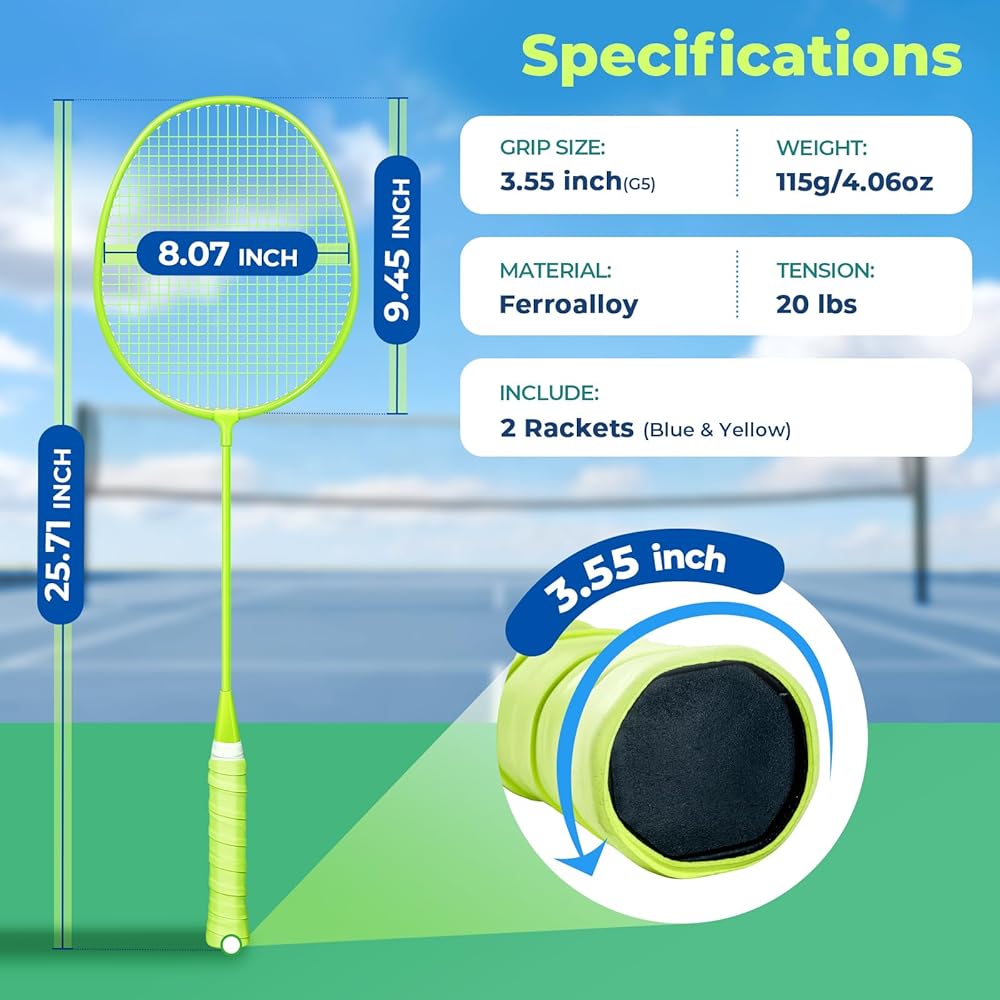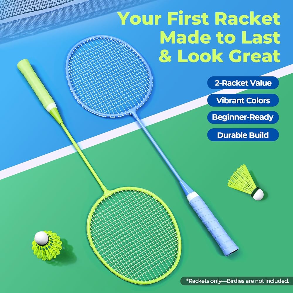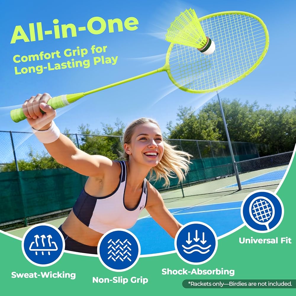 مصممة لمتعة الفناء الخلفي: تحتوي هذه العبوة على مضارب كرة الريشة ذات الألوان الزاهية والمرئية للغاية (الأزرق والأصفر النيون). يرجى ملاحظة: لا يتم تضمين الريشات، مما يسمح لك بحرية اختيار الطيور الدقيقة التي تناسب أسلوب لعبك. نقدم أيضًا خيارات حزمة مناسبة على هذه الصفحة للإعداد الكامل. مثالية لحفلات العشب ورحلات الشاطئ والتخييم وألعاب الفناء الخلفي العائلية غير الرسمية.