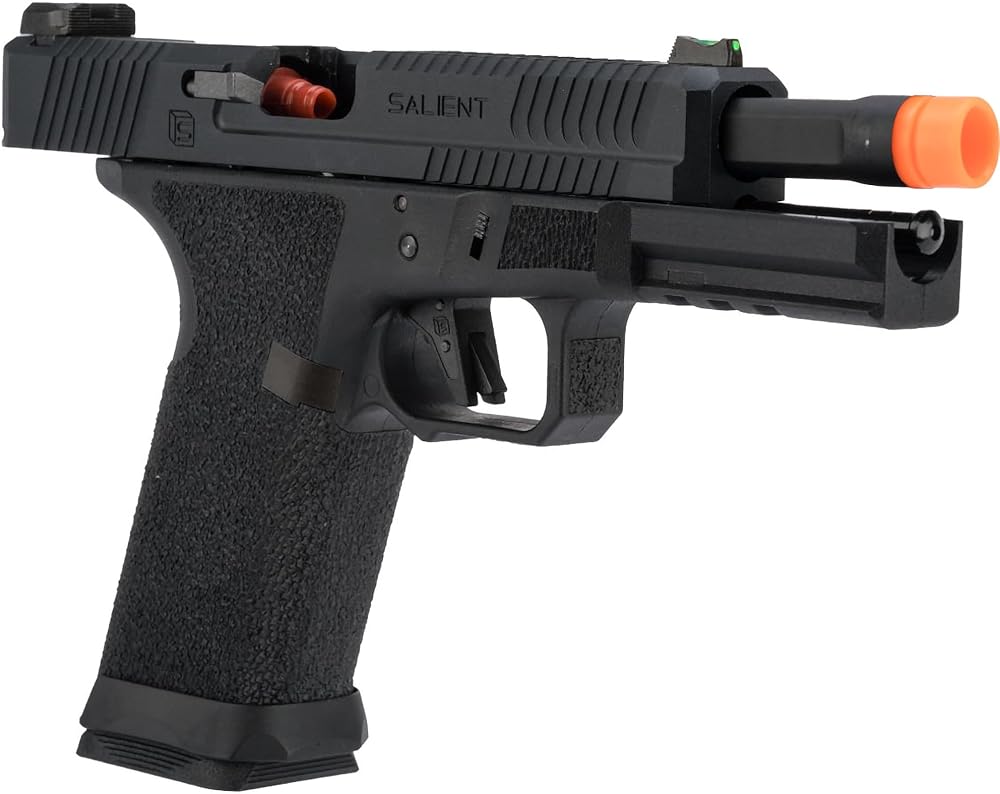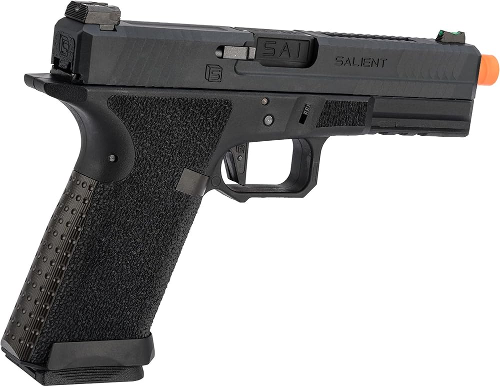 EMG has furthered their collaboration with Salient Arms International with the long awaited EMG BLU. The newest iteration to the BLU line of pistols features an updated brass back and control, mimic these same features of the real BLU. Designed closely with the geniuses at SAI, the EMG / SAI BLU is designed to be as close to the real thing as possible offering operators and enthusiasts the most realistic training analog available. Featuring a durable polymer body, machined aluminum construction and components and brass backs and control, the EMG / SAI BLU not only looks like its real deal cousin, it feels like it as well. Authentic rollmarks and branding top off the look, making it almost impossible to differentiate the 6mm version, from the 9 version.