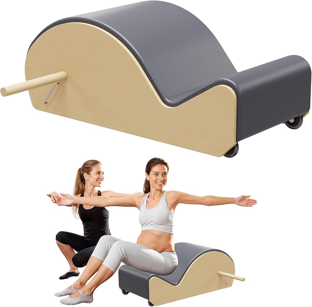 GDMSTIH Pilates Spine Corrector with cushion and handrails is a versatile fitness and exercise equipment that helps stretch the spine, chest, and shoulder muscles, improving posture and providing support for Pilates movements. It is made of wood and is ideal for adults looking to correct their body posture.