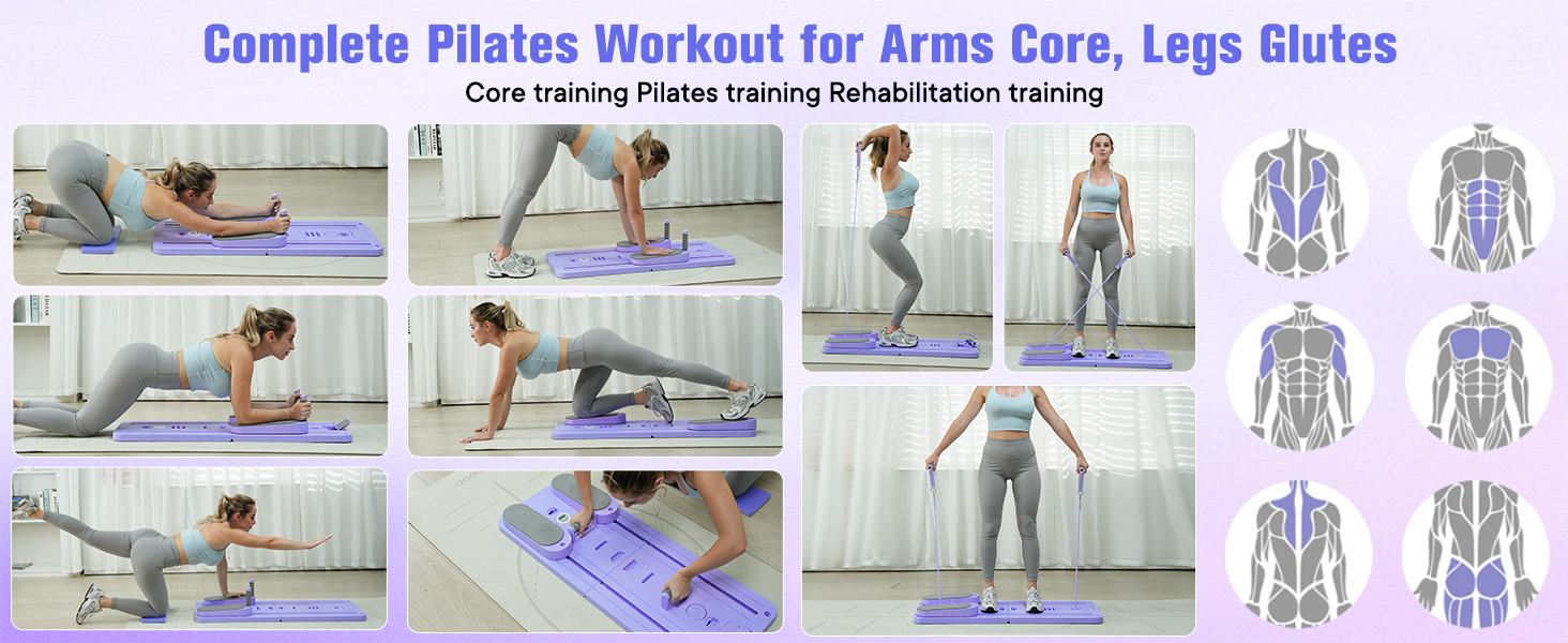 • 【Multifunctional Pilates Board】Ohkanki pilates reformer set helps you efficiently train your core muscles. It combines the functionality of an pilates board, resistance bands, push-up handles, and planks. Whether you're a beginner or an advanced fitness enthusiast, it's the perfect tool for body shaping, fat loss, and improving body function and flexibility