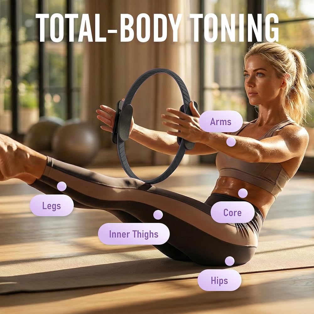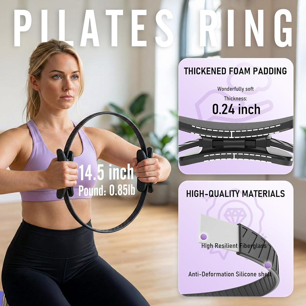 حلقة البيلاتس: مقاس 14.5 بوصة مثالي لتدريبات البيلاتيس والمقاومة العامة للتركيز على الفخذين الداخلي والخارجي والجزء العلوي من الذراعين والوركين والساقين