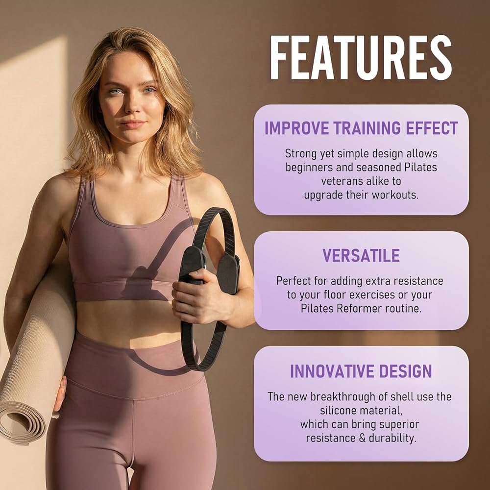 صديقة للمبتدئين: تتميز بمستوى مثالي من المقاومة، وقد تم تصميم حلقة البيلاتس للجميع من المبتدئين إلى خبراء البيلاتس المتمرسين. يمكن أن يوفر مقاومة ثابتة لتمارين التنغيم والتقوية ولكن بدون إجهاد