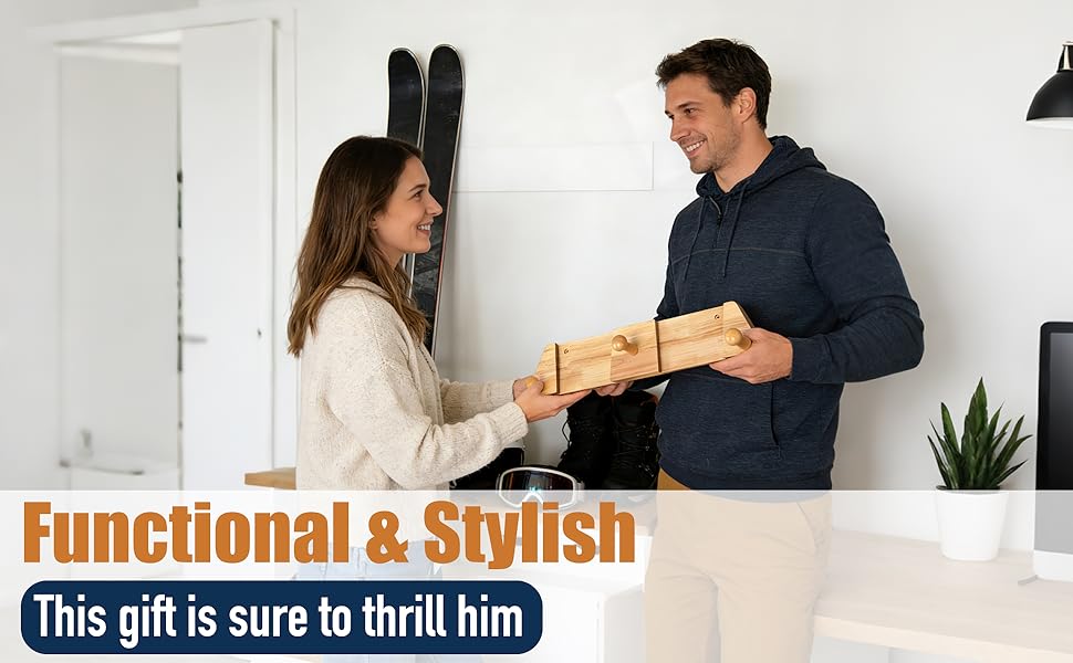 • طراز ريفي + وظيفة 3 في 1 - يضيف اللمسة النهائية من الخشب الطبيعي سحرًا دافئًا ومريحًا إلى أي مساحة - مما يضاعف من مساحة التخزين وديكور الحائط. بفضل بنيتها المصنوعة من الخشب الصلب وخطافاتها المدمجة، فإنها تقوم بثلاث وظائف في وقت واحد: تخزين الزلاجات، وتنظيم المعدات، والمظهر الرائع.