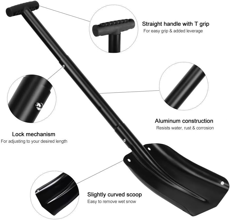 Versatile Multi-Purpose Use Perfect for snow removal, clearing ice, digging sand, soil, or gravel, suitable for cars, trucks, SUVs, camping, hiking, fishing, and other outdoor activities.