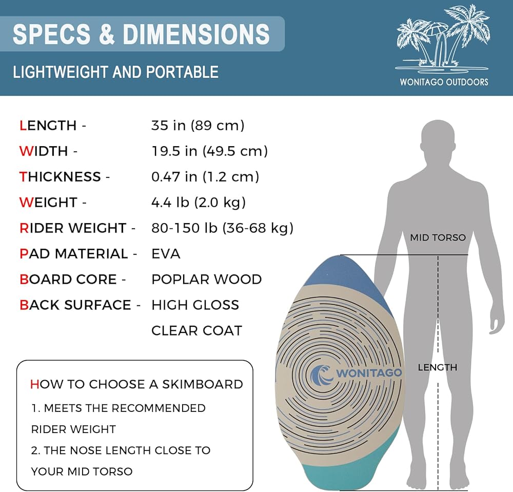 معلمات المنتج --- الطول 35 بوصة، العرض 19.5 بوصة، الوزن 4.4 رطل، مناسب لوزن الراكب بين 80 إلى 150 رطلاً. خفيفة الوزن وقابلة للحمل، يمكنك حملها بسهولة إلى أي شاطئ