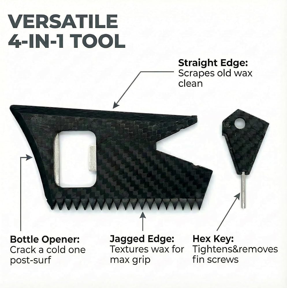 【معدات أساسية لجميع المستويات 🎁】 تعد مجموعة الأدوات هذه إضافة عملية لكل من المبتدئين ومتصفحي الأمواج المحترفين. تم تصميم هذه المجموعة من أجل المتانة والأداء، وهي تغطي الاحتياجات الأساسية لصيانة زعانف لوح التزلج والشمع