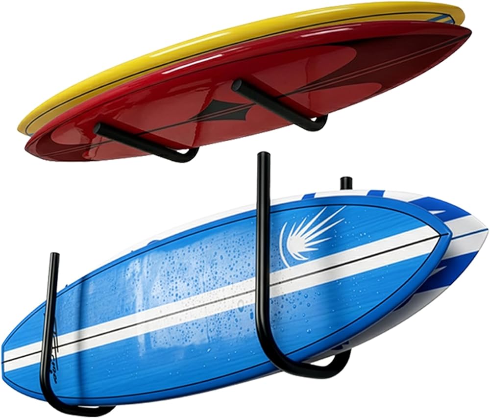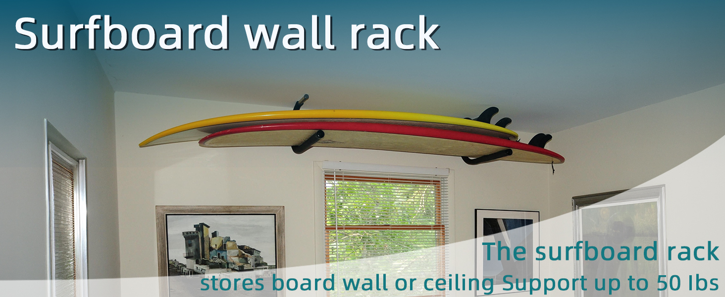 يقوم رف تخزين لوح ركوب الأمواج SUP بتثبيت الألواح على الحائط أو سقف المرآب لتخزين لوح التجديف والألواح الطويلة وألواح ركوب الأمواج والألواح القصيرة وقوارب الكاياك. يدعم ما يصل إلى 50 رطلاً