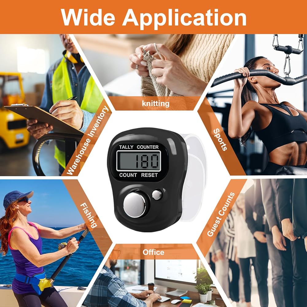 عداد أصابعك الشامل والمدمج للمهام اليومية. إنها مثالية لتتبع الأعمال اليدوية مثل الكروشيه، أو عد الدورات أو النتائج الرياضية، أو إدارة المخزون أو الحضور، وحتى المساعدة في التدريس. مثالية لأي موقف يتطلب العد تقريبًا