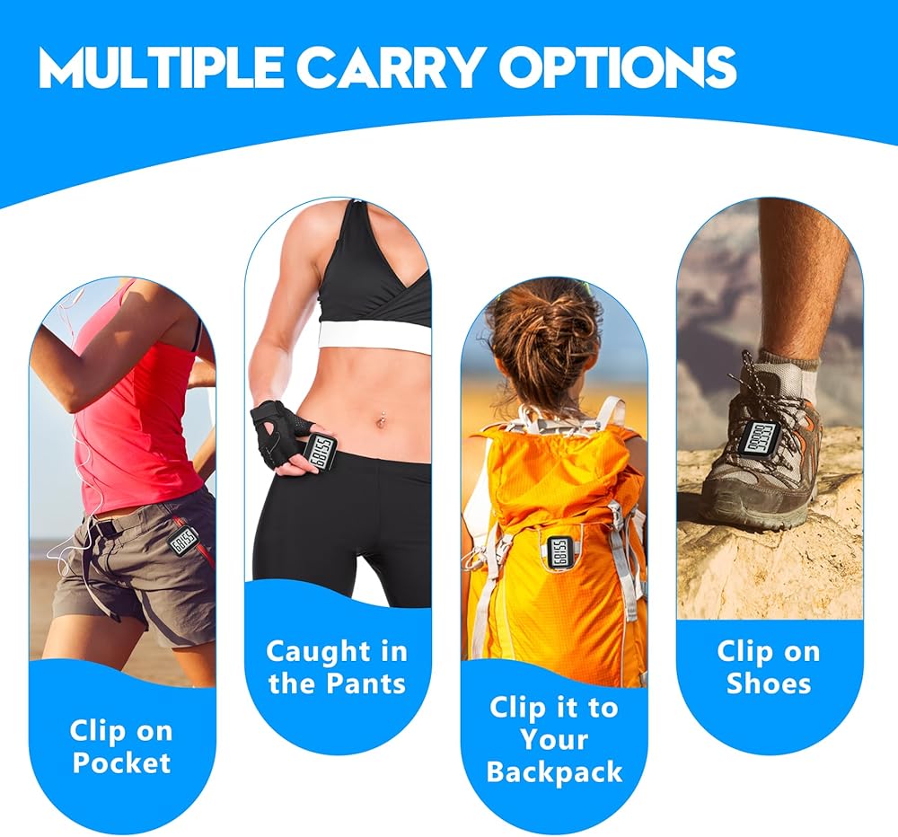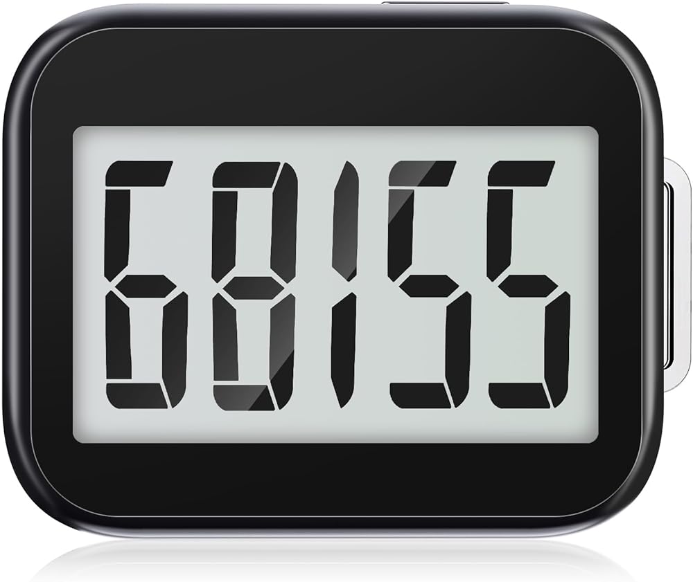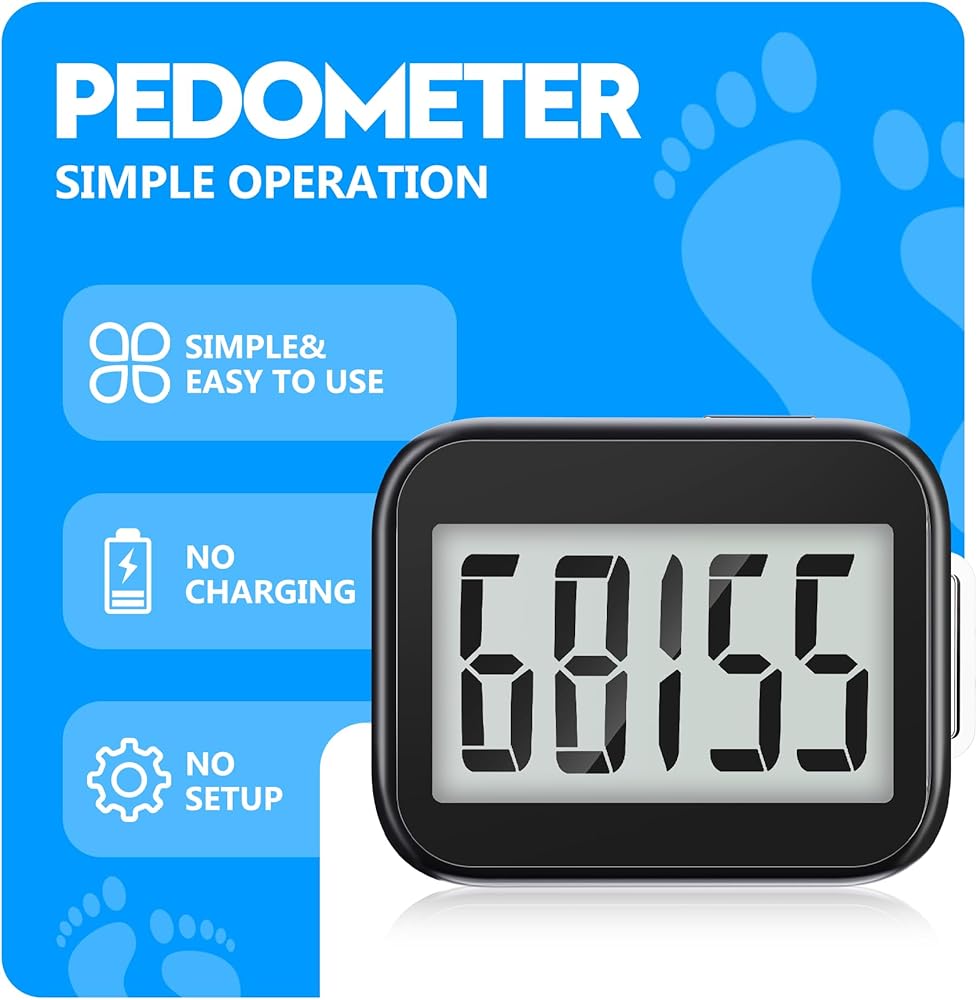 سهلة القراءة: شاشة LCD الكبيرة واضحة وسهلة القراءة، وعدد الخطوات واضح في لمحة؛ تعتبر الشاشة المكبرة مثالية لكبار السن للقراءة، ويمكنك بسهولة التحقق من تقدم برنامج اللياقة البدنية الخاص بك أثناء ممارسة التمارين.