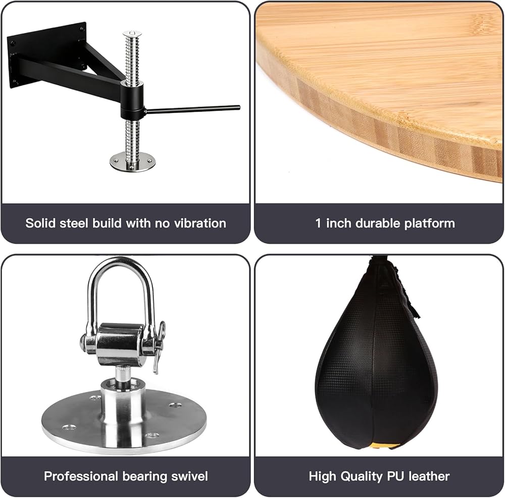 Durable and Stable Platform: With a 19.7-inch diameter and 1 inch thick Bamboo wood board, this speed bag platform offers superior stabilization, ensuring a durable and stable base for your boxing training.