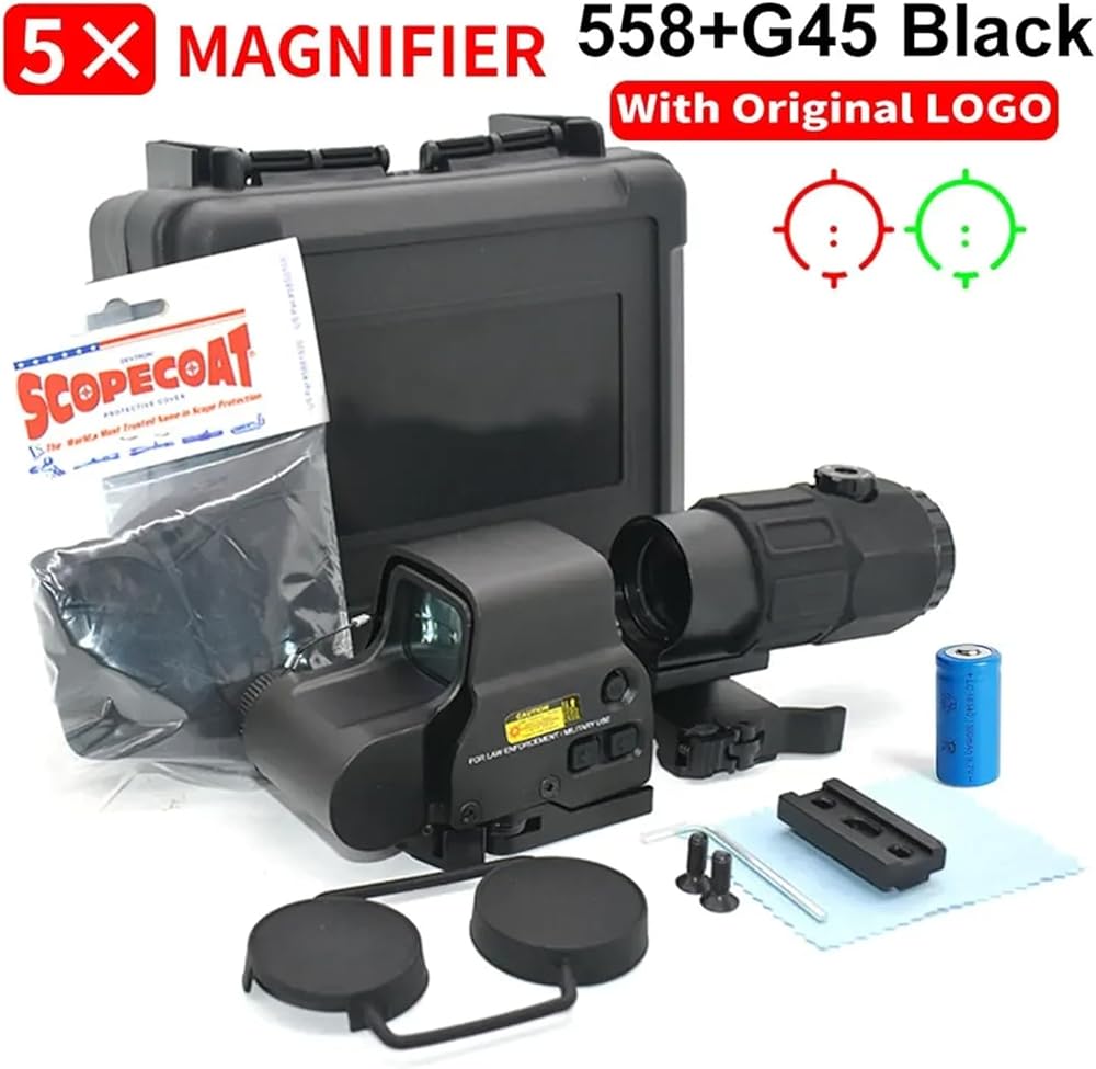 ✔558 G45 نقطة رؤية حمراء/خضراء ثلاثية الأبعاد: 558 +G45 يحتوي على 10 مستويات لتعديل السطوع ويستخدم قاعدة تحرير سريعة للتثبيت والإزالة السريعة.
