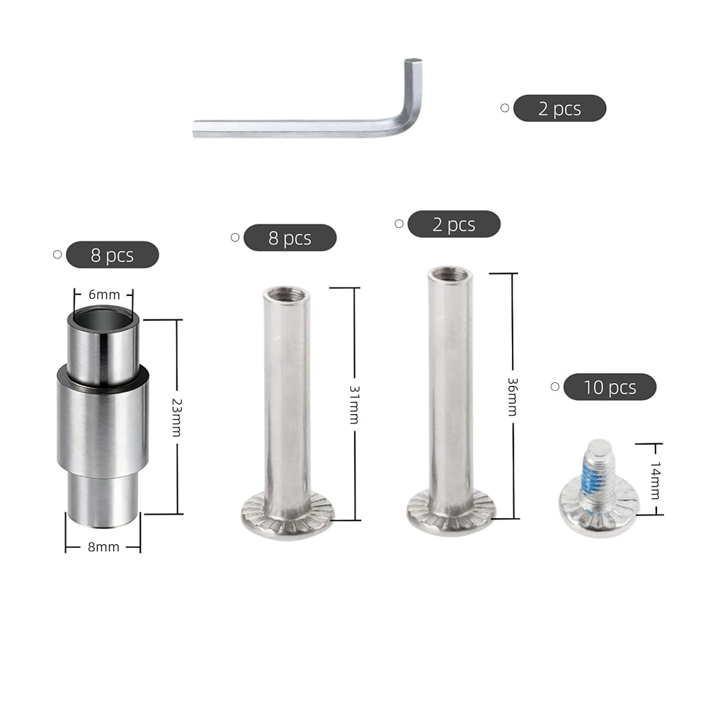 【30PCS Complete Repair Kit - All You Need for Skate Maintenance】This all-in-one inline skate replacement parts kit includes 2x 36mm 6mm axles, 8x 31mm 6mm axles, 8x stepped aluminum bearing spacers, 10x axle set screws, 2x 4mm hex wrenches**—everything you need for quick skate axle/bearing spacer replacement, repairs and upgrades. No extra tool or part purchases required, perfect for at-home skate maintenance and DIY enthusiasts.