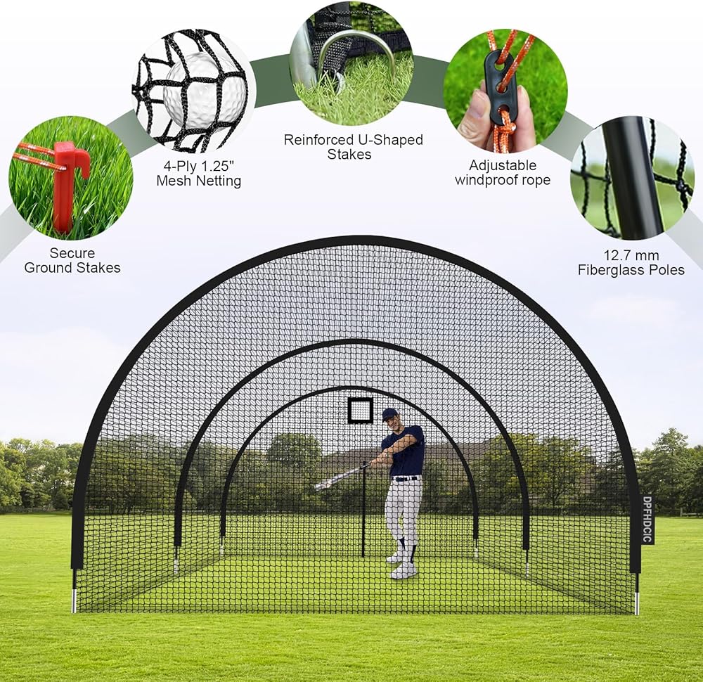 Multi-Sport Outdoor Batting Cage: Built for versatile outdoor practice, this batting cage supports baseball, softball, cricket, tennis, and more. Whether you're building fundamentals or refining advanced skills, it offers a reliable space for solo or team practice