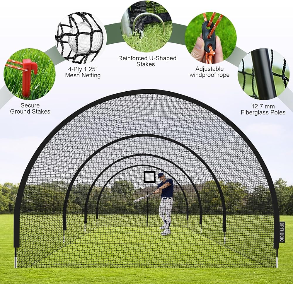 Multi-Sport Outdoor Batting Cage: Built for versatile outdoor practice, this batting cage supports baseball, softball, cricket, tennis, and more. Whether you're building fundamentals or refining advanced skills, it offers a reliable space for solo or team practice