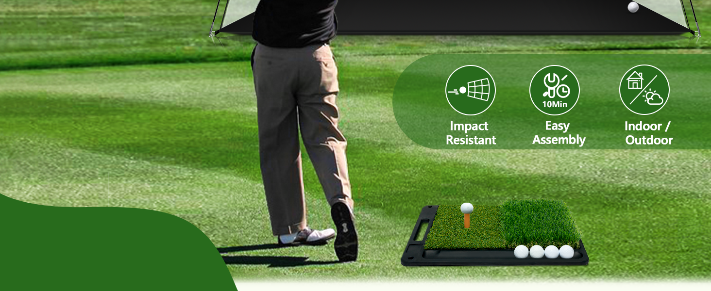 【🏌شبكة جولف متعددة الأهداف الكل في واحد 】مجموعة شبكة الجولف هذه مجهزة بشبكة جولف مقاس 10 × 7 أقدام، وقاعدة مطاطية متينة مقاس 18 × 12 بوصة، وحصيرة جولف مزدوجة العشب، و5 × كرات جولف، و1 × تي شيرت مطاطي، و1 × حقيبة حمل ذات سعة كبيرة و4 × أوتاد أرضية يمكنك من خلالها إكمال جميع تدريبات الجولف الخاصة بك