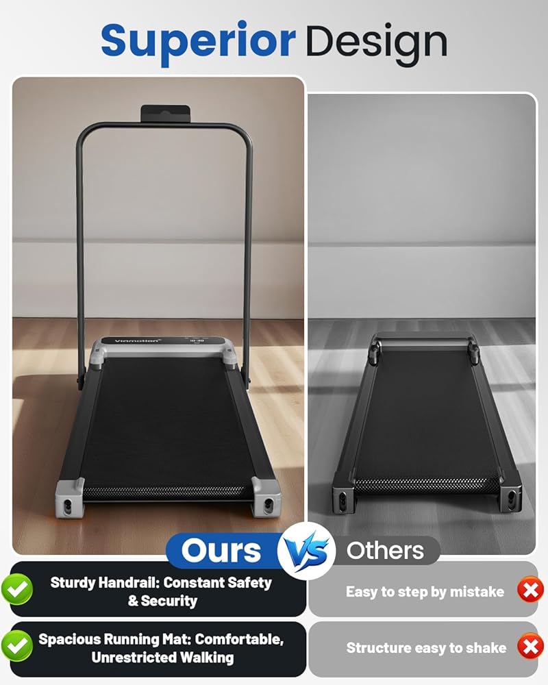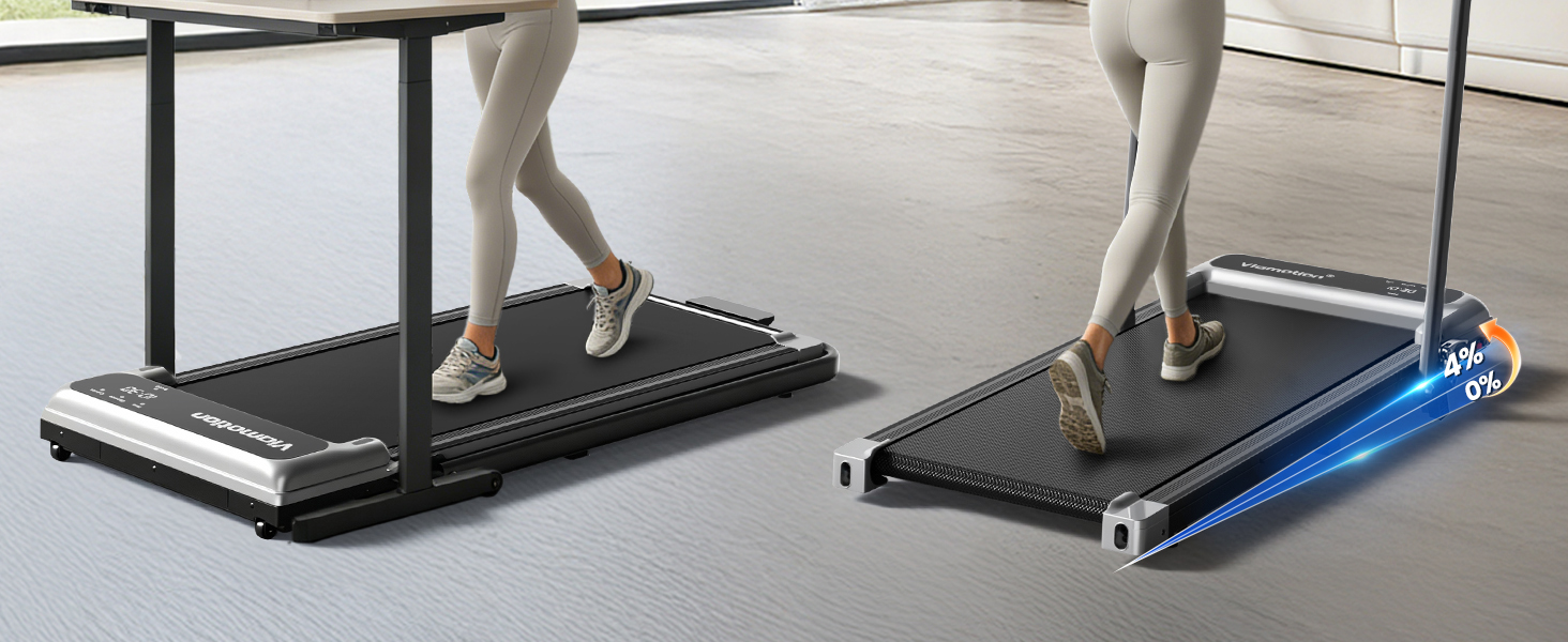 • وسادة المشي المائلة القابلة للتعديل مع مقابض: وسادة المشي تحت المكتب هذه مجهزة بمقابض قوية وميل قابل للتعديل بمقدار 4 درجات. يمكن أن يوفر شريط المقبض دعمًا إضافيًا وأمانًا أثناء التمرين، كما يسمح لك تصميم الميل القابل للتعديل بزاوية 4 درجات بحرق السعرات الحرارية بشكل أكثر كفاءة.