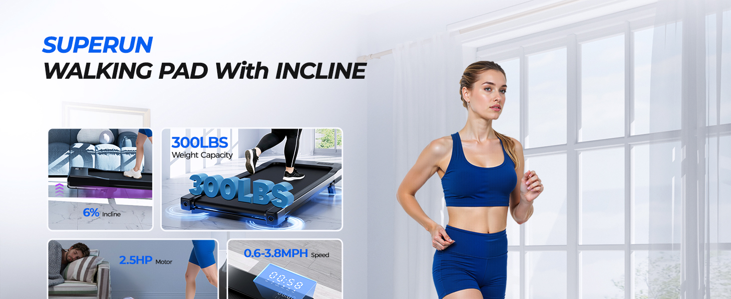 وسادة المشي SupeRun مع ميل، جهاز مشي تحت المكتب، 3 في 1 جهاز مشي محمول للمنزل مع شاشة LED للتحكم عن بعد، جهاز مشي صغير هادئ بقوة 2.5 حصان للاستخدام المنزلي المكتبي، سعة 300 رطل in Kuwait