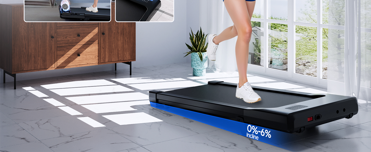 • 【وسادة المشي المائلة بنسبة 6%: حرق الدهون بمقدار 2X】 ارفع مستوى تمرينك مع جهاز المشي الخاص بنا. لا تمشي فحسب، بل تسلق! 30 دقيقة على جهاز المشي هذا تحرق سعرات حرارية تعادل بيضتين إضافيتين مقارنة بالمشي المسطح. إنه "اختراق الكفاءة" النهائي لحرق السعرات الحرارية بشكل أسرع أثناء مكالماتك المكتبية أو جلساتك المنزلية