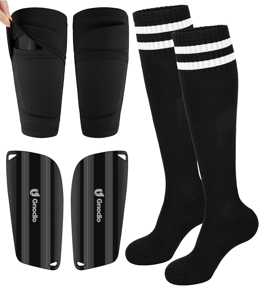 COMPLETE SOCCER PROTECTIVE GEAR SET: This set includes 1 pair of soccer shin guards, 1 pair of shin guard sleeves, and 1 pair of soccer socks, creating a perfect match with your soccer jersey. Suitable for daily play, training, or matches, it delivers reliable protection and all-day comfort on the field