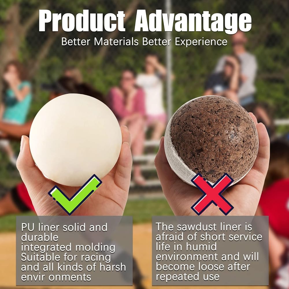 🥎المقاس الرسمي: هذه الكرة اللينة مصنوعة بمقاس 11 بوصة، الوزن: 6 أونصة، عبوة من 4 كرات. هذه الكرة الناعمة أخف من الوزن القياسي وهي صديقة للمبتدئين وتمنع الإصابات. تعمل الدرزات المسطحة على الكرات على تقليل احتكاك الهواء حتى تتمكن من الرمي لأقصى مسافة