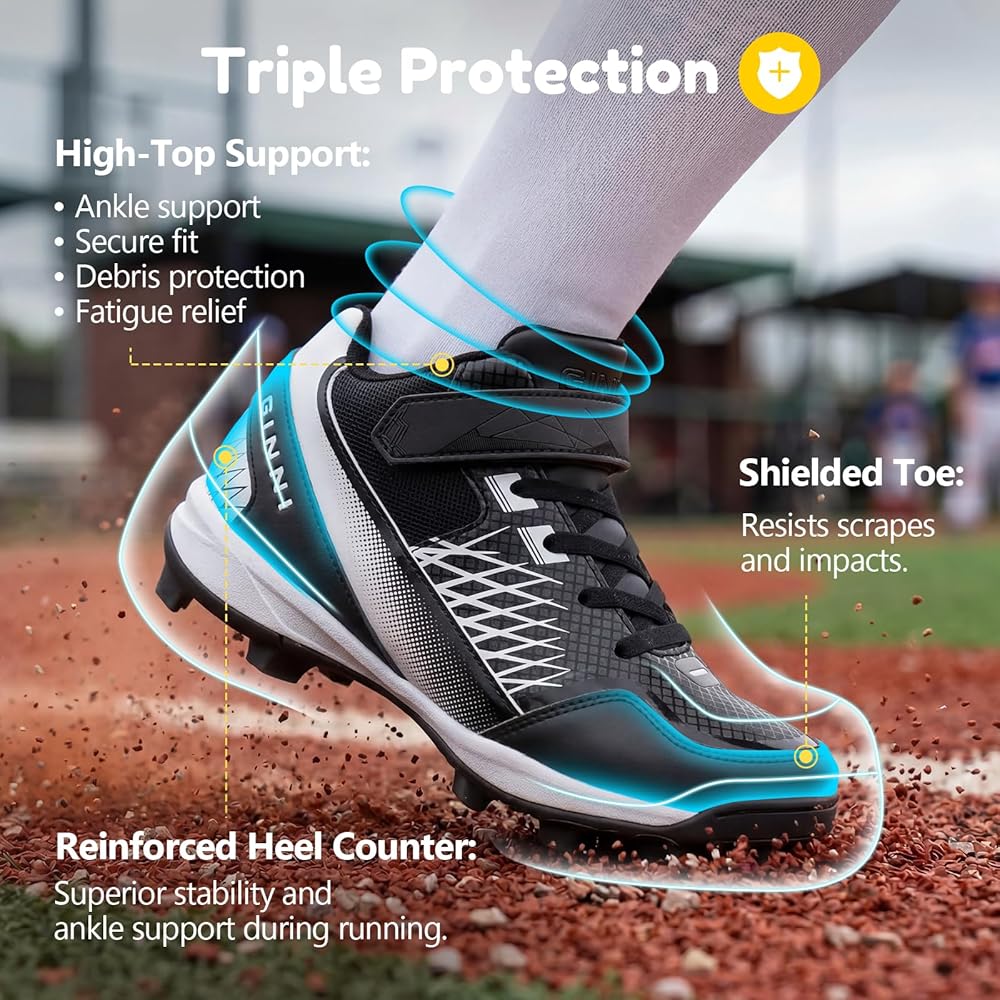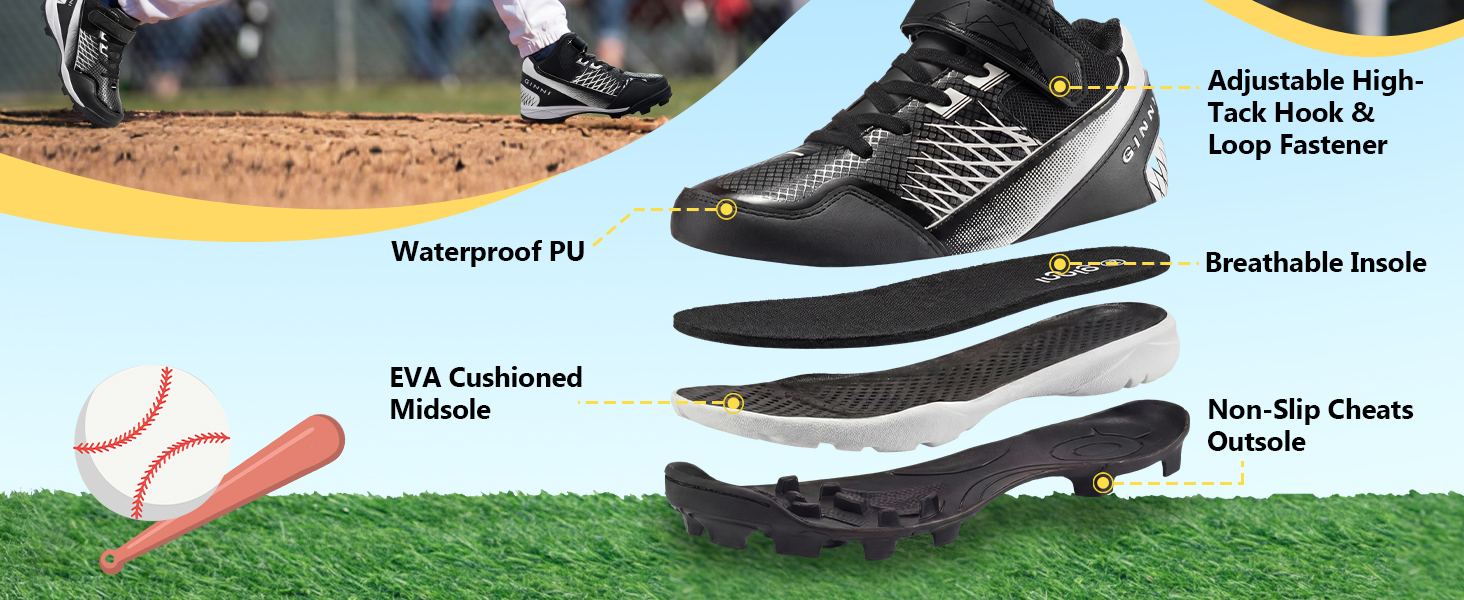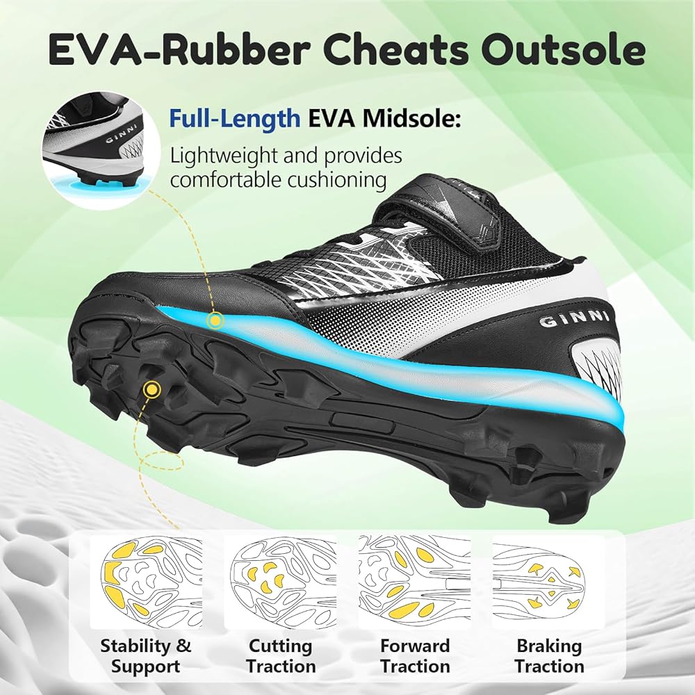 أحذية رياضية متعددة الأداء: هذه الأحذية الاحترافية مثالية للبيسبول والكرة اللينة، وتتميز بتصميم أنيق في منتصف الجزء العلوي باللون الوردي الفاقع والأزرق السماوي والأسود. مصممة للأرضيات الخارجية، فهي تمكن الأولاد والبنات والرياضيين الشباب من التفوق في كل لعبة بأناقة وخفة الحركة