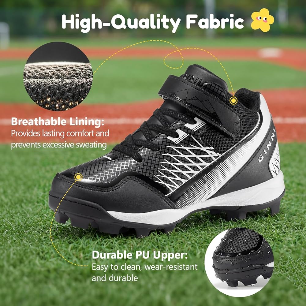 جلد PU متين يسهل العناية به: هذه الأحذية مصنوعة من جلد صناعي فاخر، وتوفر طبقة علوية ناعمة سهلة التنظيف بشكل لا يصدق. تحافظ البطانة القماشية المسامية على جفاف القدمين، بينما يضمن السطح الجلدي القابل للغسل يدويًا بقاء معدات أطفالك منعشة ومتينة خلال المواسم الرياضية المكثفة والظروف الميدانية الموحلة.