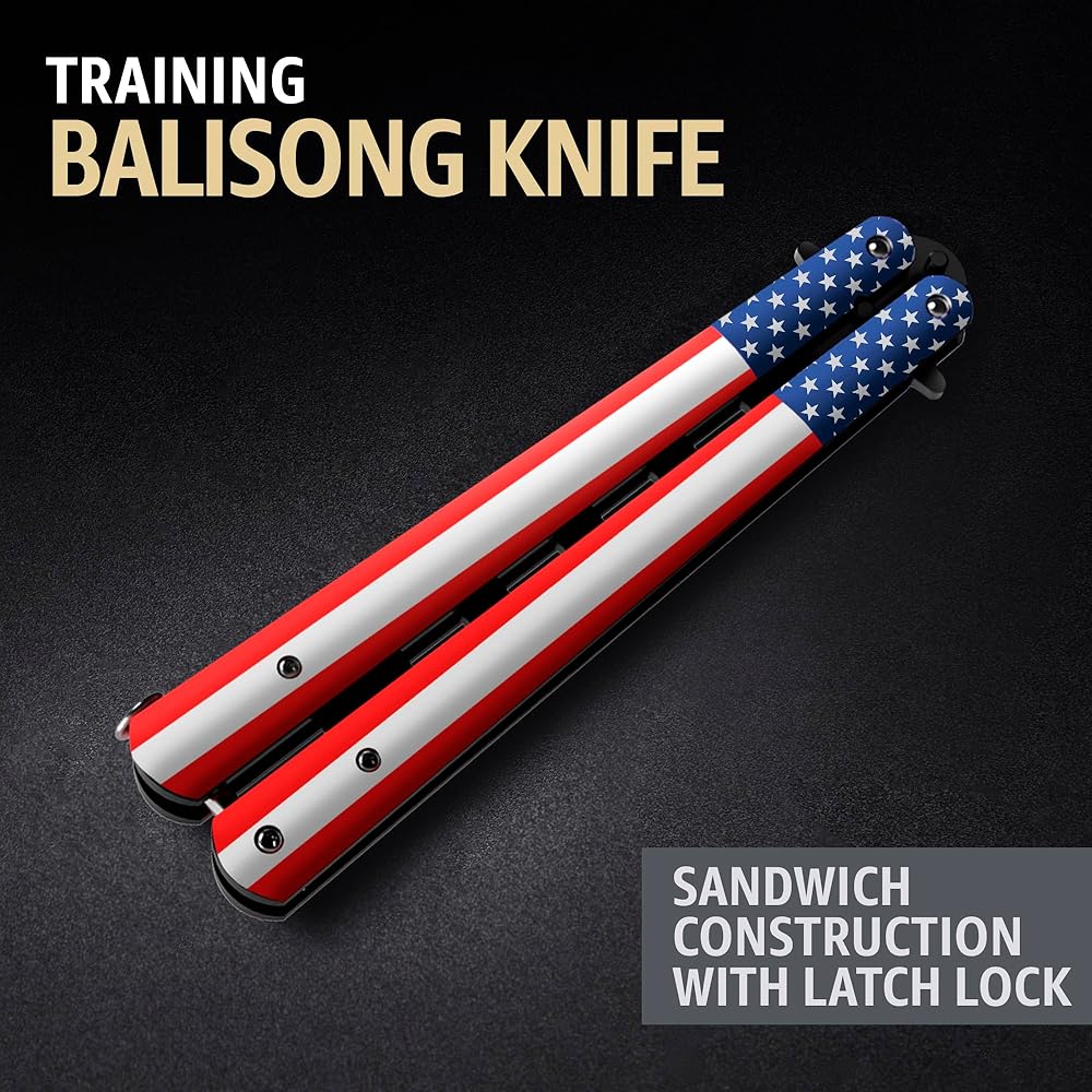 سكين الفراشة - مدرب باليسونج - مدرب الفراشة الأمريكي مع مزلاج زنبركي مؤكد - سكاكين باليسونج ليست حقيقية وليست حادة - خدعة مملة من الفولاذ المقاوم للصدأ بالكامل CSGO K14 U-N