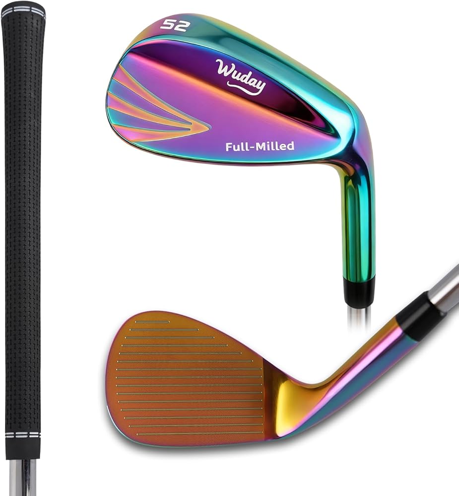 Our 52/56/60 Degree Right Hand Golf Wedges for Men feature a premium full-face CNC milled design with gold and colorful coating options. This sand, lob and gap wedge set delivers powerful enhanced spin and precise control, ideal for sand bunkers, deep grass and rough terrain. Crafted with superior quality and optimal weight balance, these golf wedges ensure consistent shots every swing. As a niche brand with no expensive endorsements, we offer top-grade golf wedge at competitive prices with outstanding green-side performance. Fitted with a high-quality grip for comfort, it's a perfect golf gift and ideal choice for golfers of all skill levels.