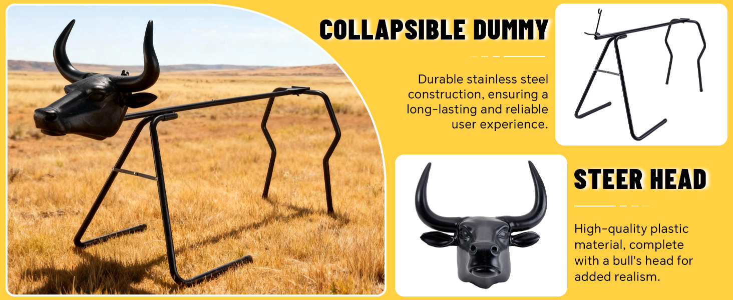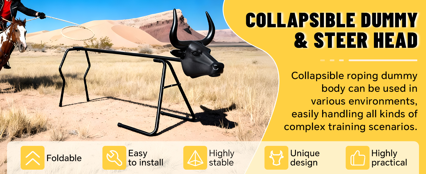 High Quality: The Collapsible Roping Dummy is constructed from sturdy, weather-resistant iron tubing and plastic materials, ensuring stability and durability. It is specifically designed for long-term use in various demanding environments.
