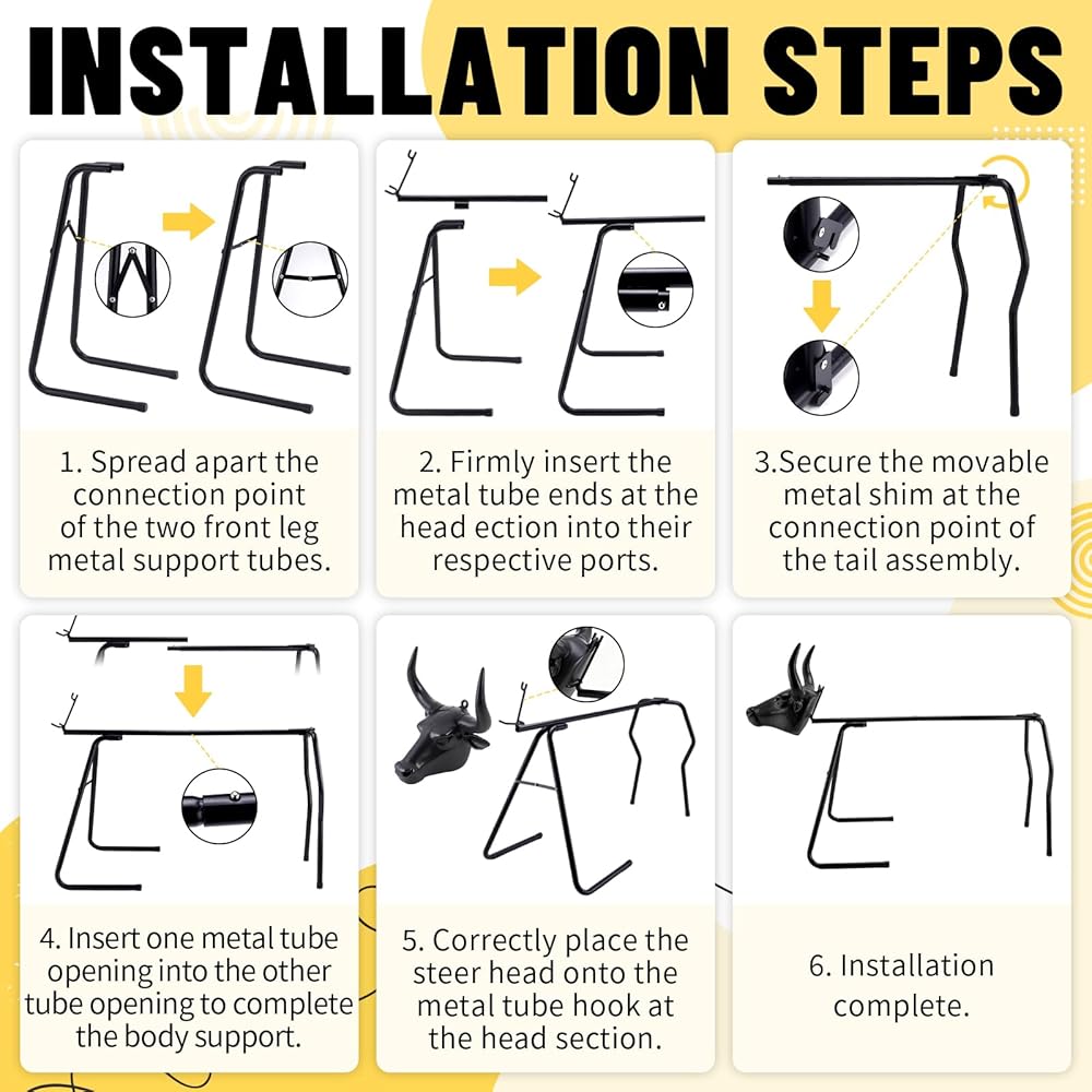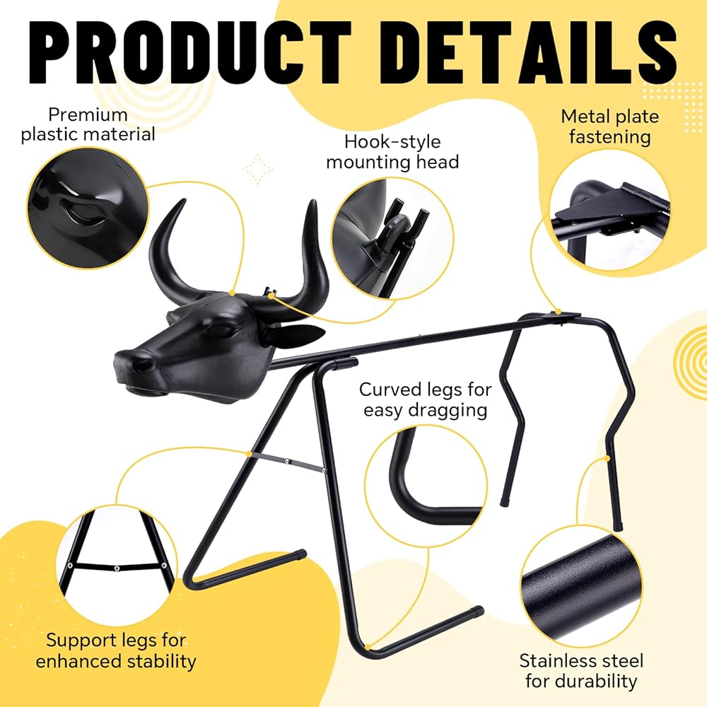 All components are easy to assemble. The bull's head is made of plastic with a lifelike design, while the torso is constructed of metal for durability. This product is designed for enthusiasts and is ideal for practicing lasso skills. During use, it neither tilts nor shifts—it remains firmly in place with excellent stability.