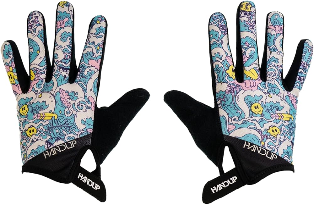 Handup Youth كامل الأصابع خفيف الوزن مضاد للانزلاق دراجة جبلية MTB دراجة Enduro Downhill XC قفازات موتوكروس للجنسين 50+ UFP حماية من الشمس (ركوب الموجة، شباب كبير)