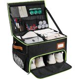 تصميم مدروس: تحتوي الطبقة العليا من منظم تخزين الجولف هذا على شريطين قابلين للتعديل لمنع السقوط. 3 فتحات لحجرة الأحذية تعزز دوران الهواء. فتحة بطاقة واضحة تسهل عملية تحديد الهوية. مقابض قوية لسهولة الحمل. تتيح السحابات الناعمة الوصول السريع.