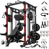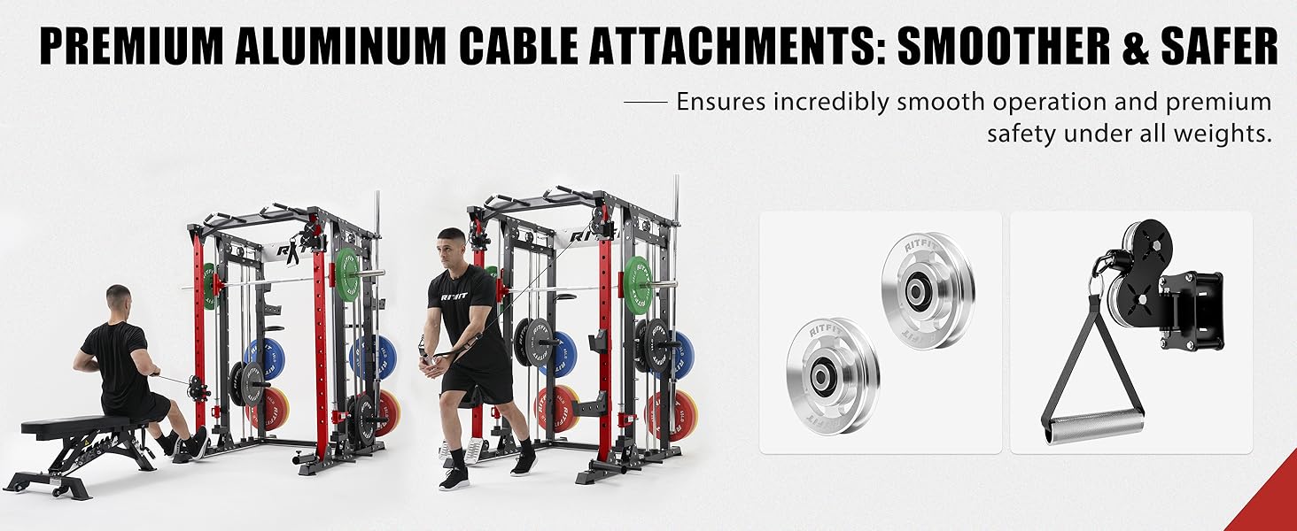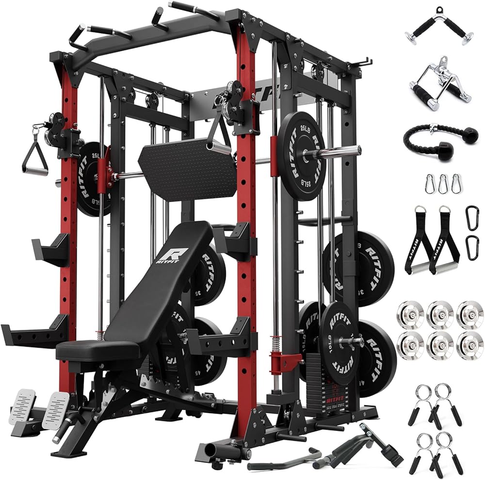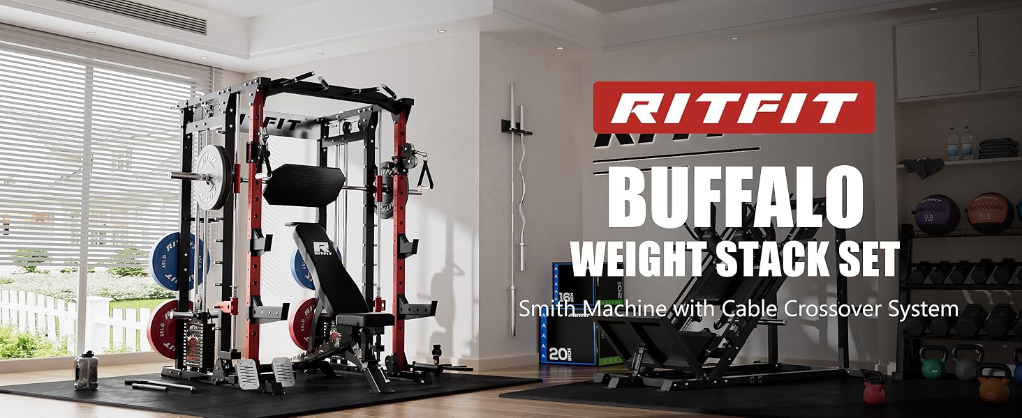 RitFit Buffalo Smith Machine Package, All-in-One Power Cage with Weight Stack , Power Rack with Cable Crossover & Leg Press Attachment for Home Gym