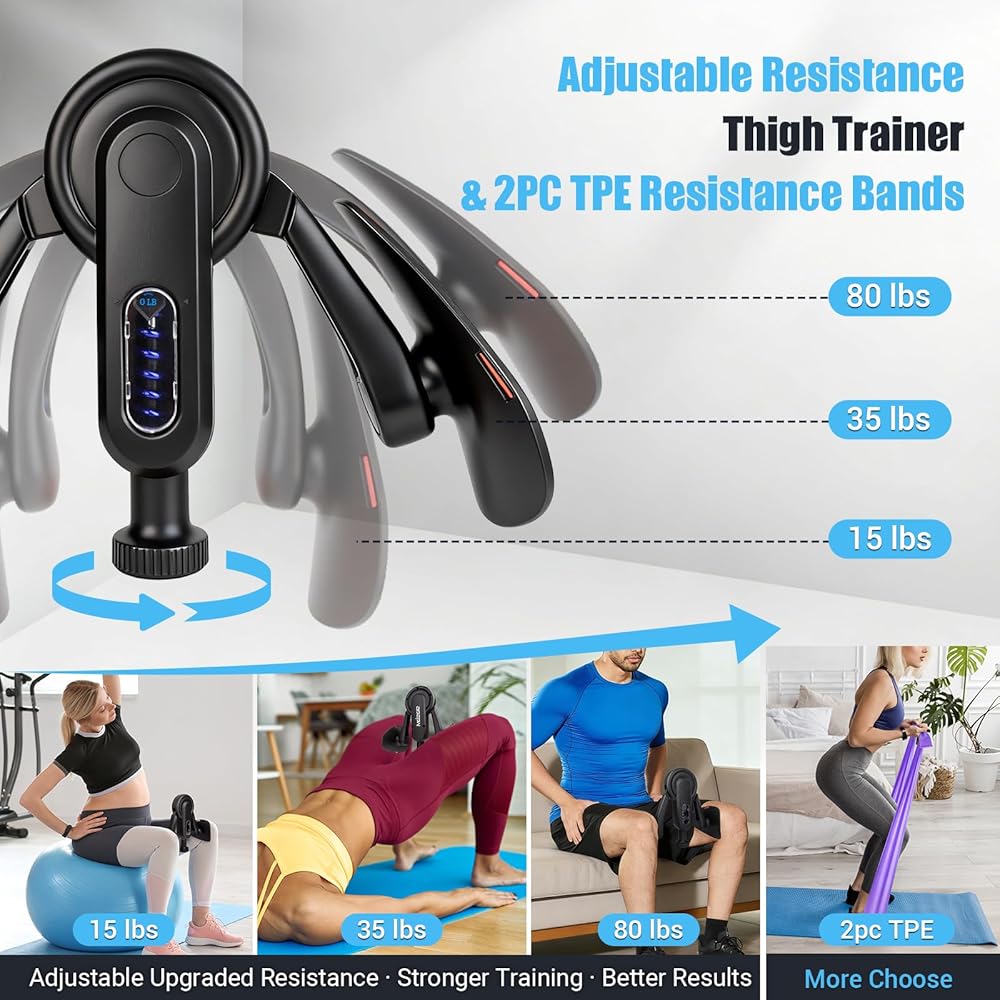 [Adjustable Resistance Thigh Trainer with 360° Rotation] With adjustable resistance up to 80 lbs, this thigh trainer adapts easily to different fitness levels. The rotating pads allow flexible positioning, making it effective as an inner thigh exerciser and functional thigh workout equipment. This advanced thigh trainer supports controlled leg and hip strengthening