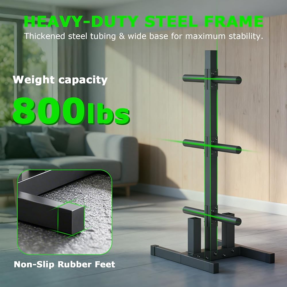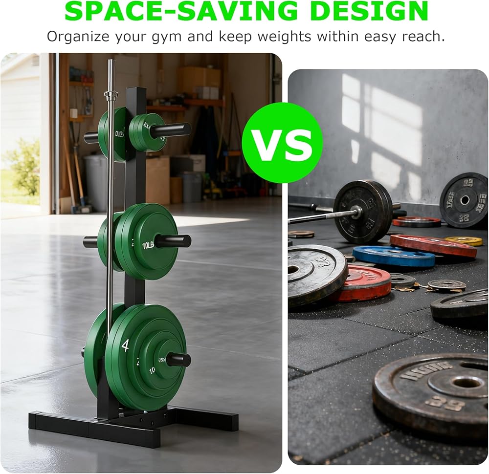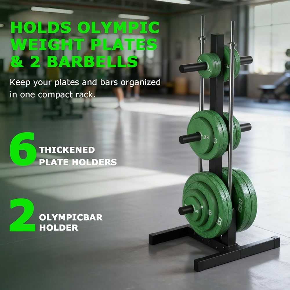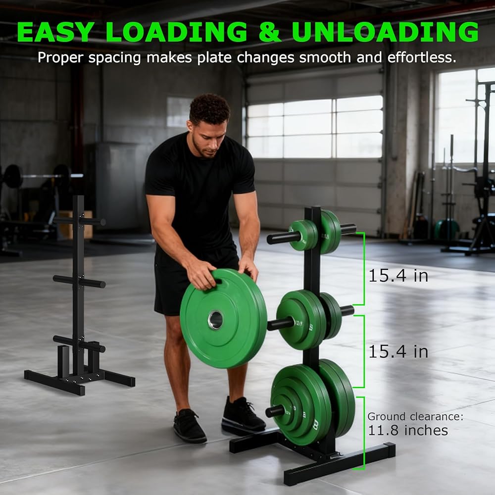 تخزين محسّن للوحة الممتصة للصدمات: يتميز حامل لوحة الوزن الخاص بنا بستة أوتاد موضوعة بشكل استراتيجي توفر مسافة واسعة بين كل طبقة، إلى جانب اثنين من الأثقال الأولمبية الموضوعة مركزيًا، مما يسمح لك بتنظيم الألواح الممتصة للصدمات دون عناء دون ازدحام.