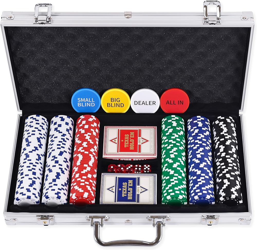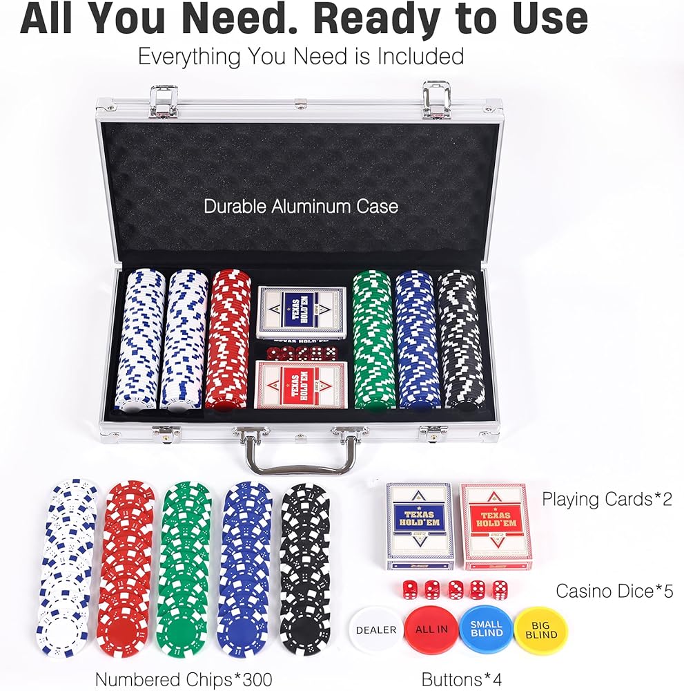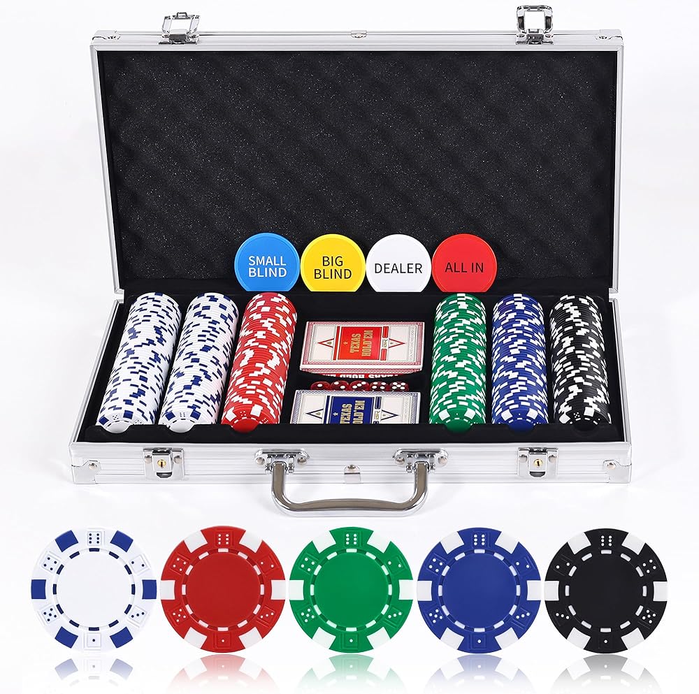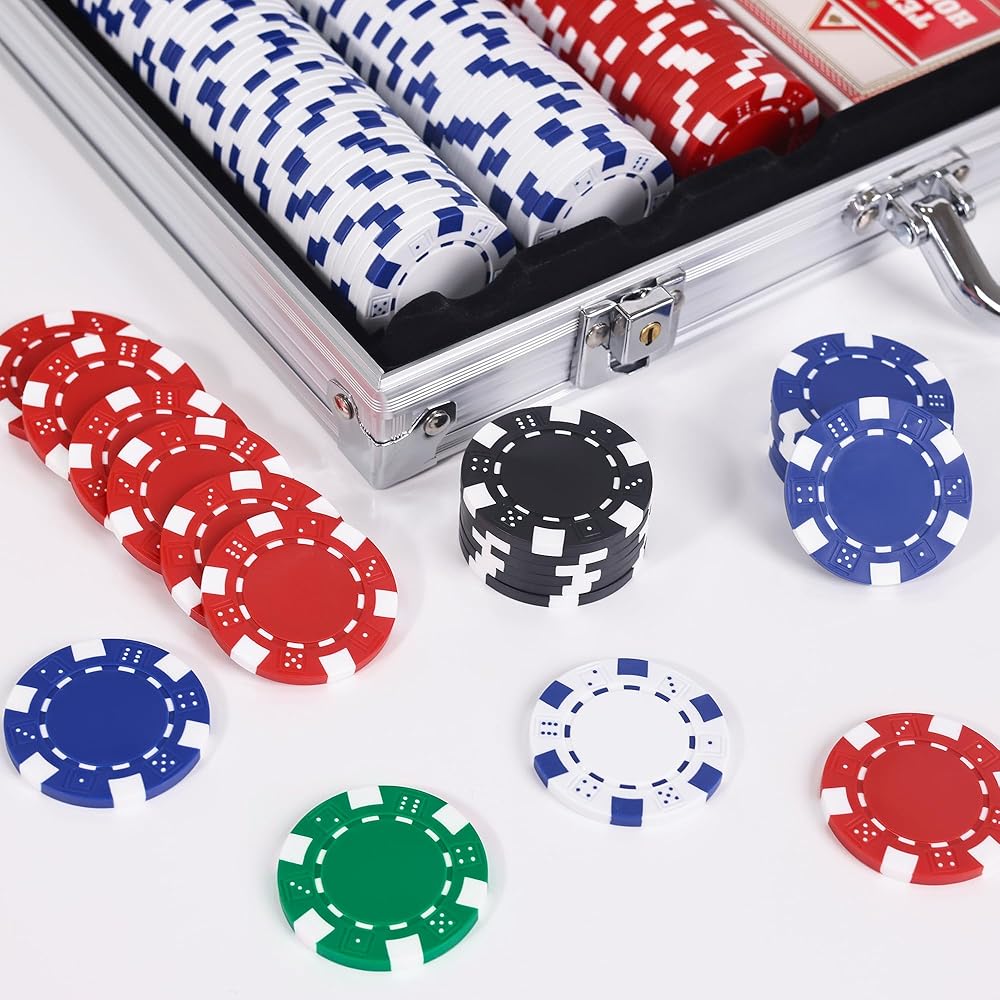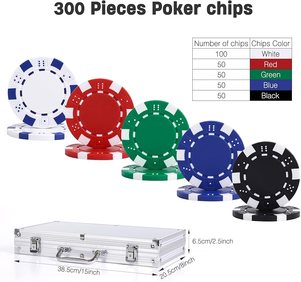 【نسبة الكمية 】-مجموعة الرقائق المكونة من 300 قطعة يمكن أن تستوعب بشكل مريح 6-8 لاعبين. يمكن استخدام الرقائق الخمس المرمزة بالألوان عبر ألعاب مختلفة وتخصيصها بالقيم النقدية الخاصة بك.