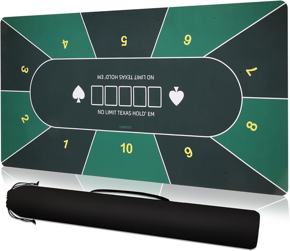 العبوة تشتمل على: سجادة البوكر وتأتي مع حقيبة تخزين للحمل، ملاحظة دافئة: قد تحتوي على بعض خطوط التجاعيد بسبب الشحن، وسوف تصبح مسطحة بعد تسطيحها ببضعة أيام. أي سؤال حول حصيرة البوكر لدينا، مرحبا بكم في إعلامنا.