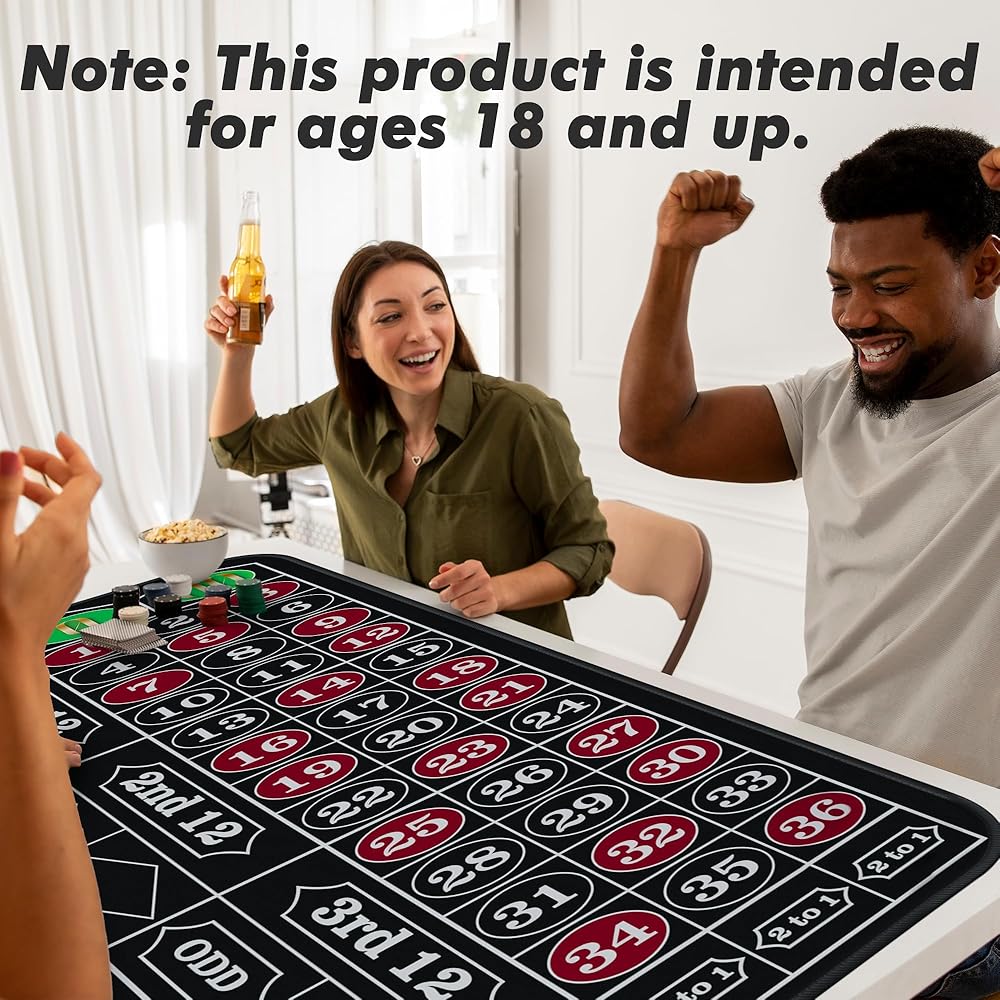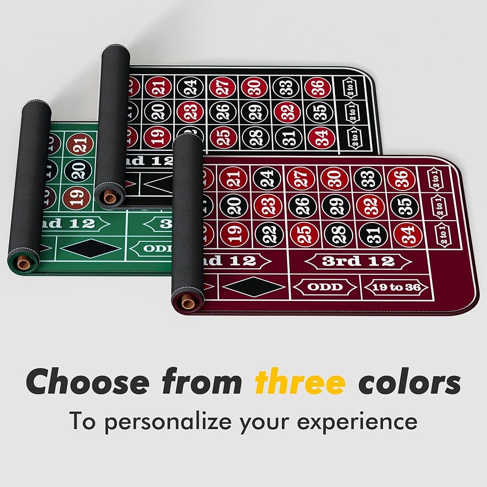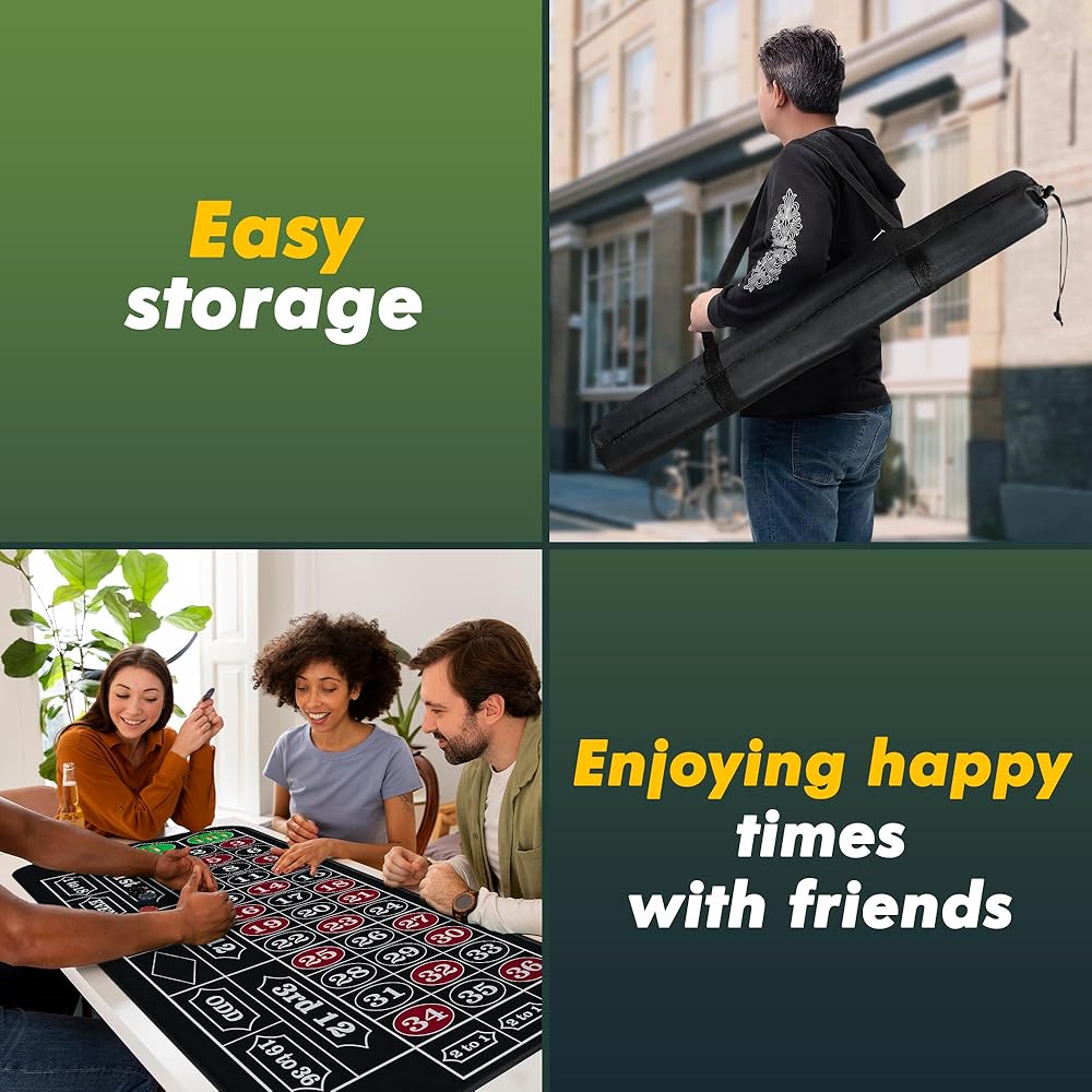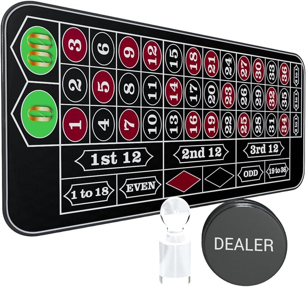 【محتويات مجموعة اللعبة الخاصة بك】: حصيرة الروليت مقاس 70 بوصة × 35 بوصة، علامة فوز أكريليك، زر الموزع