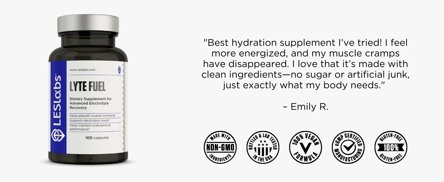 LES Labs Lyte Fuel - استبدال المنحل بالكهرباء، والقدرة على التحمل، والأداء، وتشنجات العضلات ودعم الكيتو - المغنيسيوم والزنك والبوتاسيوم والكروم - مكمل غير معدّل وراثيًا - 100 كبسولة