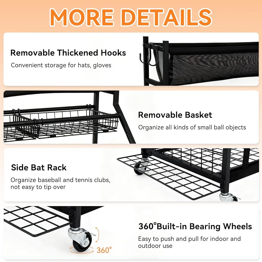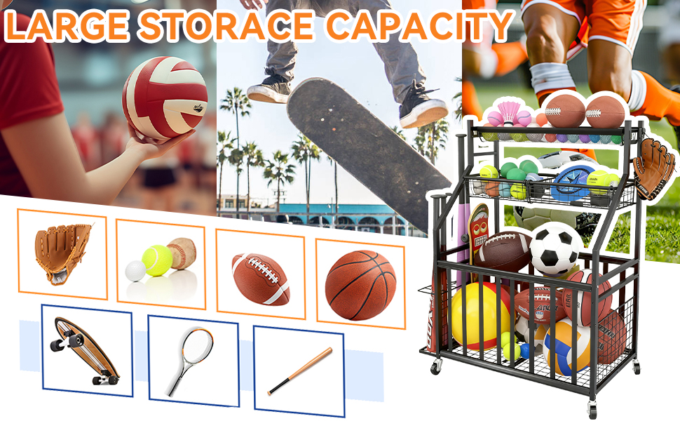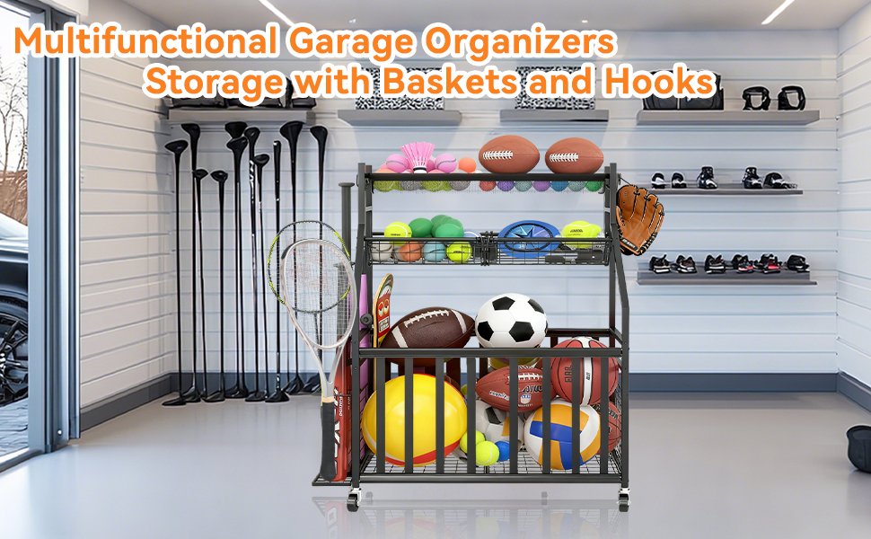 • 【منظم المرآب المحمول 】 انقل مجموعتك الرياضية بأكملها دون عناء! يتميز منظم المعدات الرياضية لدينا بـ 4 عجلات قابلة للقفل بزاوية 360 درجة تنزلق بسلاسة على أرضيات الجراج، مما يسمح لك بإعادة وضع المعدات للتنظيف أو التغييرات الموسمية في ثوانٍ.