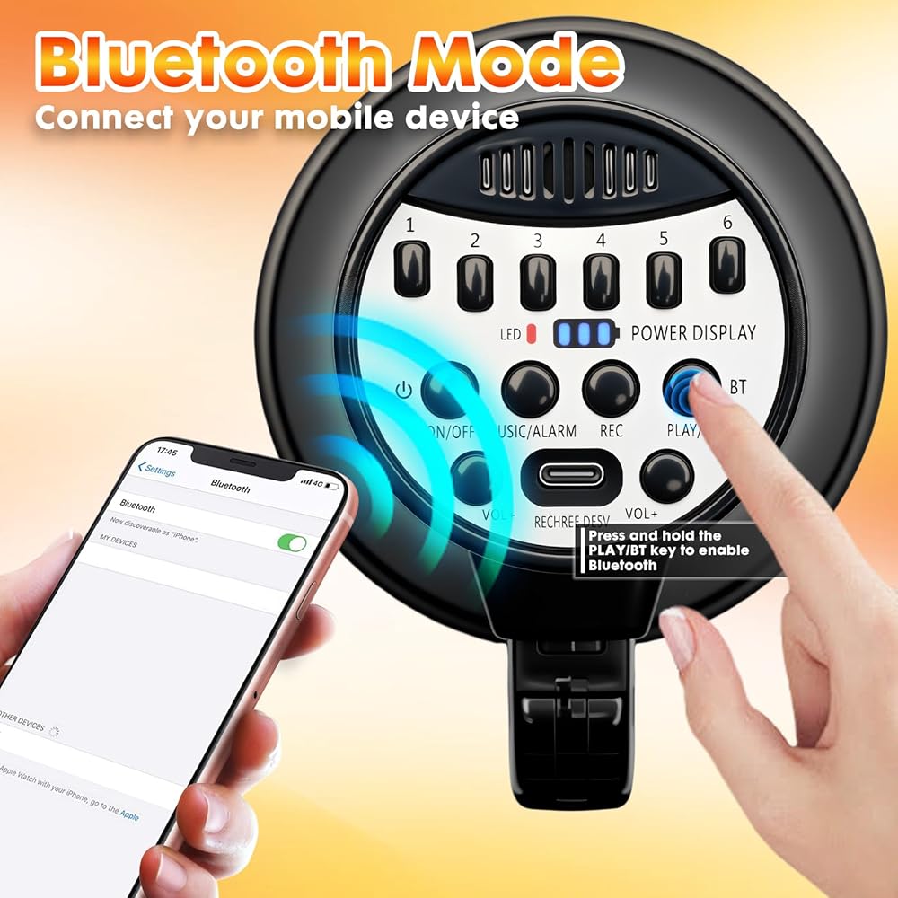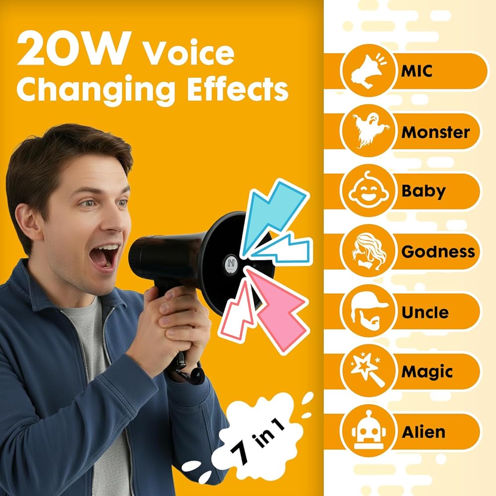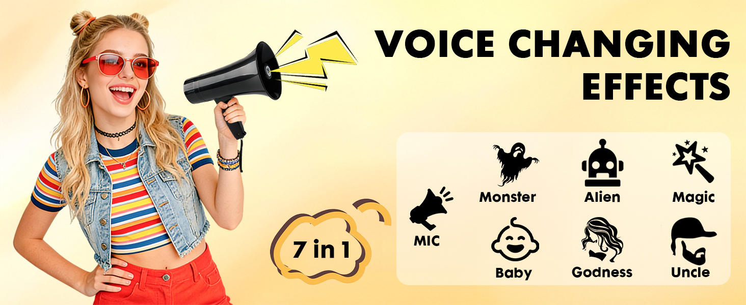 [مغير الصوت مكبر الصوت]: بصرف النظر عن تضخيم صوتك، فإن مكبر الصوت هذا مجهز بـ 6 مؤثرات صوتية مدمجة مثيرة للاهتمام، مما يتيح لك تحويل صوتك إلى شيء أكثر متعة في لحظة.