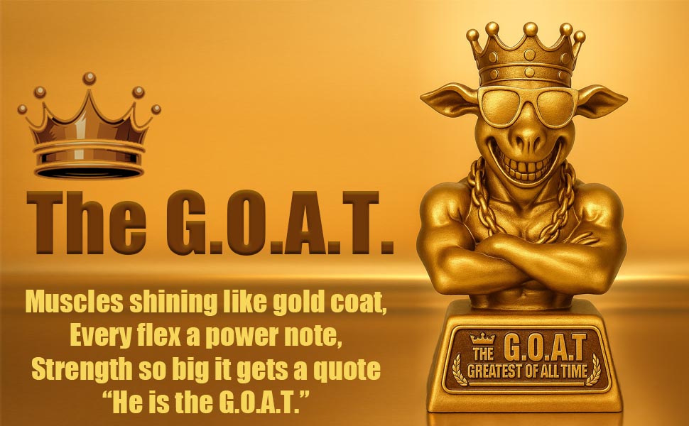 🏆 كأس عنزة عضلية مقاس 9 بوصات - الأقوى والأطرف. أكثر عنزة أسطورية على قيد الحياة. تعرف على الملك العضلي لجميع الجوائز - عنزة مرفوعة تهز التاج الملكي، وسلسلة ذهبية، وظلال رائعة جدًا يمكنها أن تمنع دموع خصمك. يقف هذا الوحش فخورًا بطول 9 بوصات، ولا ينثني فحسب - فهو يمتلك الغرفة.
