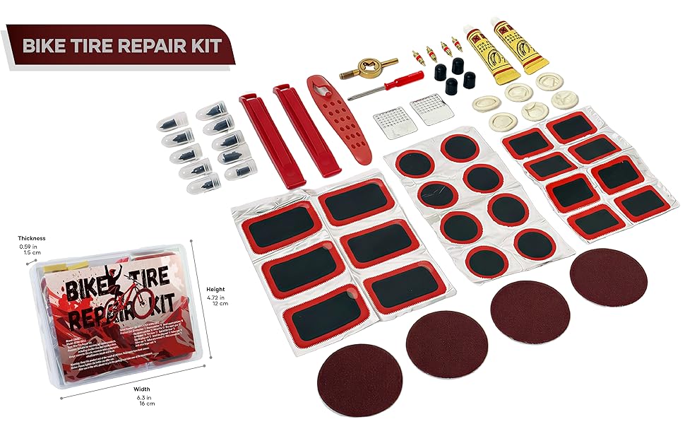 ✅تم توفير 5 مسامير مطاطية صغيرة + 5 كبيرة لإصلاح الإطارات - قم بتوصيل ثقوب الإطارات بدون أنبوب مباشرة لإغلاق الطوارئ. تتضمن أيضًا 22 رقعة مستديرة + مربعة (مثالية لمجموعة رقعات إطارات الدراجة)، والتي يمكنها التعامل مع تسرب الهواء والشقوق في الإطارات الأنبوبية والإطارات بدون أنابيب. تغطي مجموعة تصحيح إطارات الدراجة هذه جميع احتياجات إصلاح الإطارات.