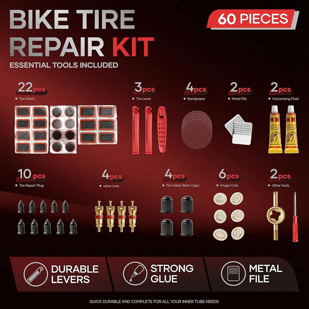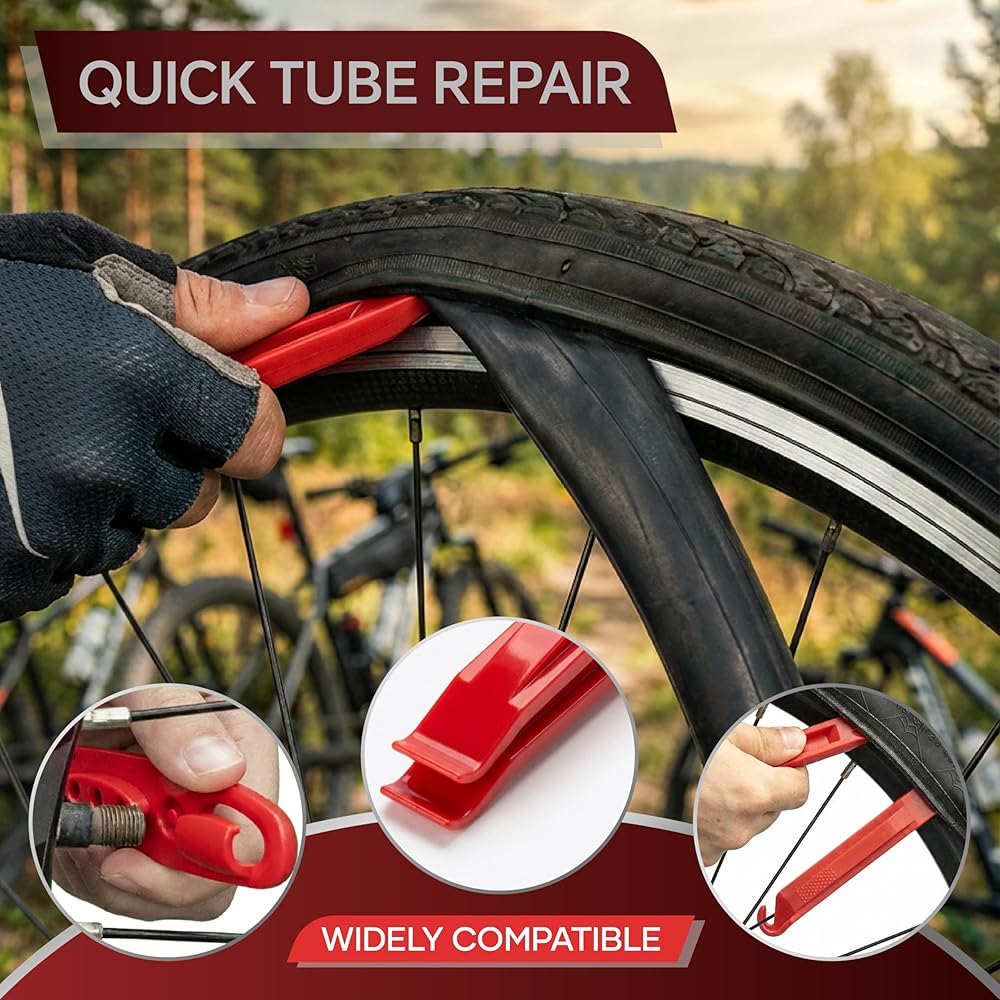 ✅يأتي مع مساند أصابع واسعة من اللاتكس (بدون أيدي ملطخة بالغراء)؛ أذرع إطارات سميكة ومزخرفة (قوية ومقاومة للانزلاق لسهولة إزالة الإطارات). يحتوي الصندوق على مساحة تخزين مقسمة للأدوات المنظمة. حتى المستخدمين لأول مرة يمكنهم إتقان الإصلاحات باستخدام مجموعة أدوات إصلاح إطارات الدراجة هذه - فهي بسيطة وفعالة.